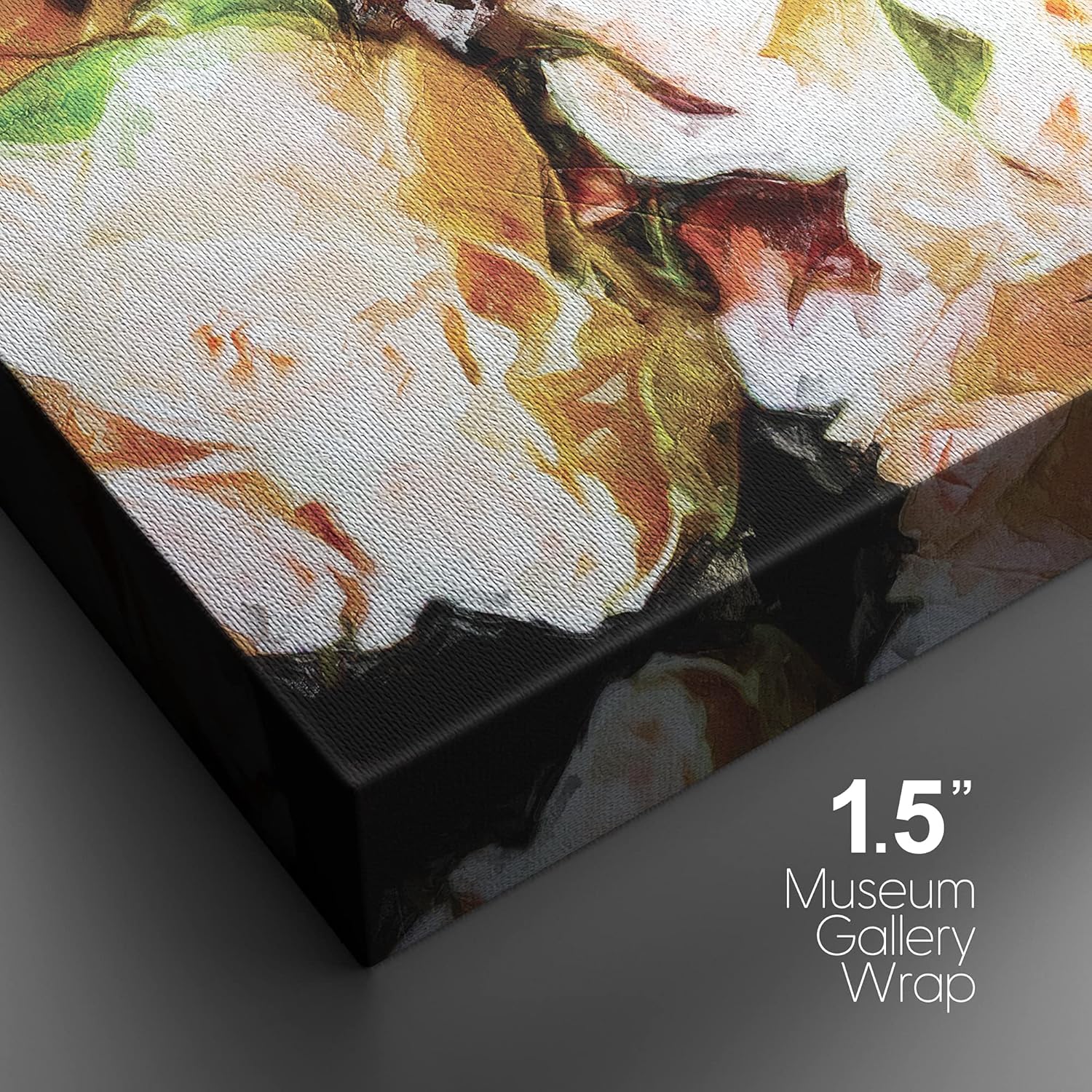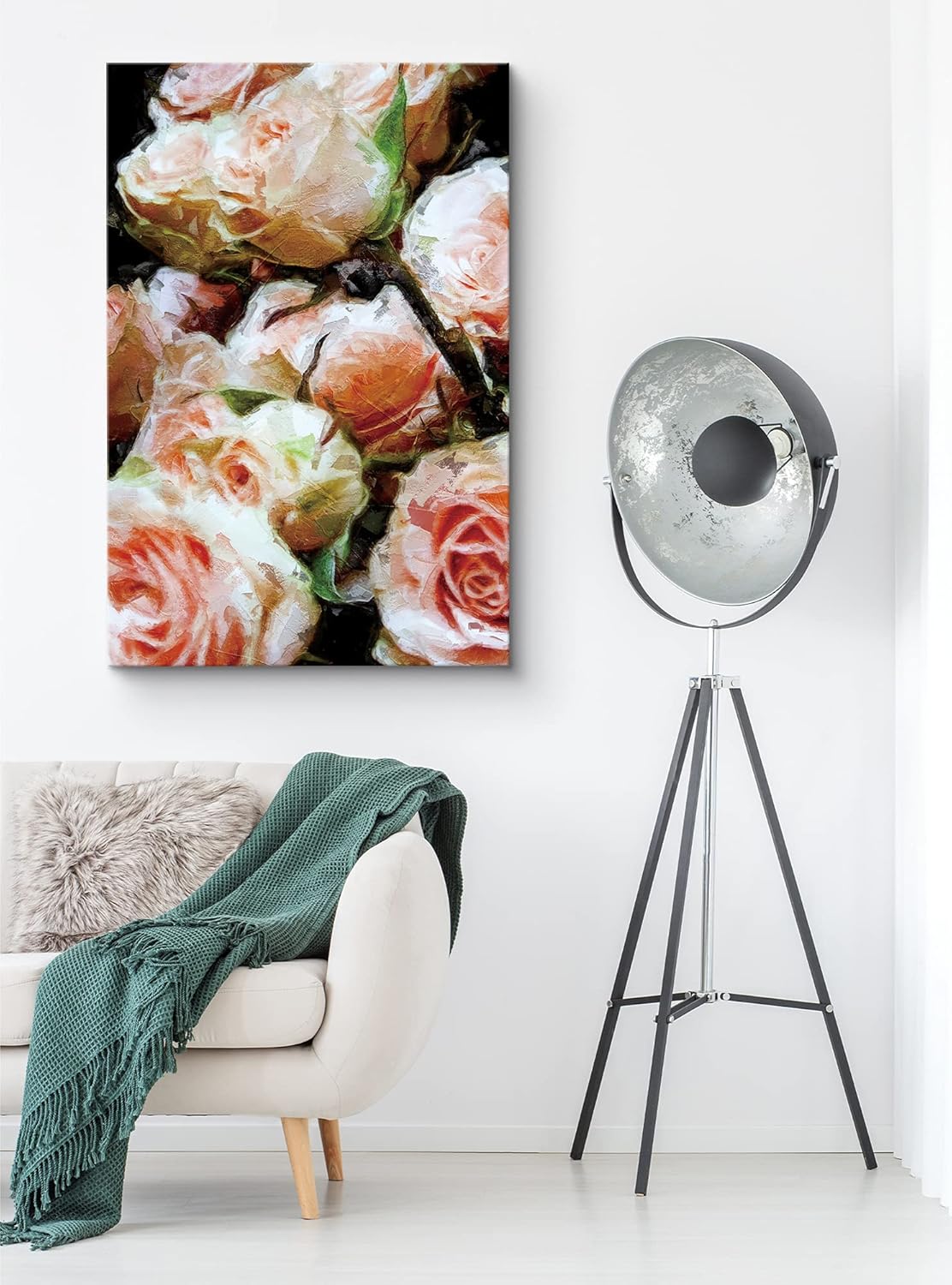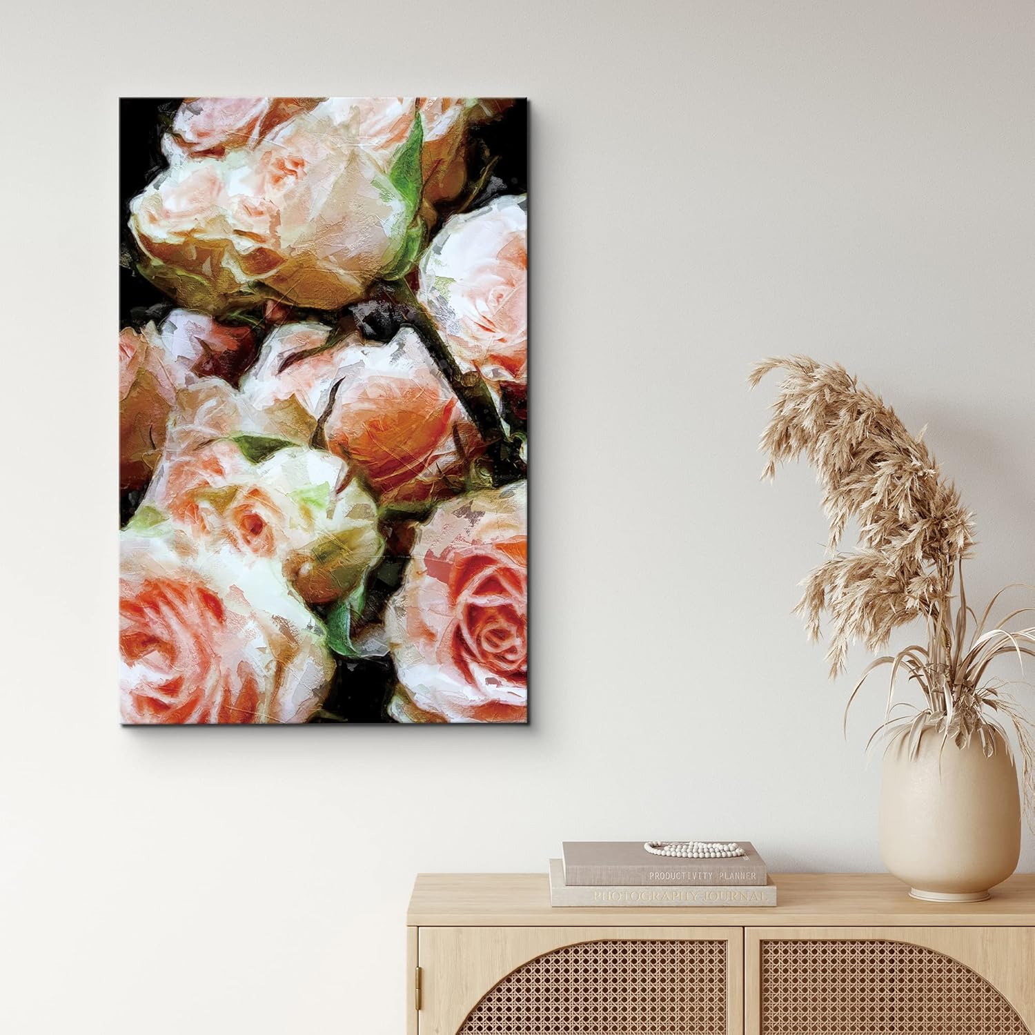 B2T Canvas Wall Art Bouquet of Pink and Peach Roses Floral Flower Oil Painting Realism Romantics Closeup Expressive for Living Room, Bedroom, Office - 16x24 inches