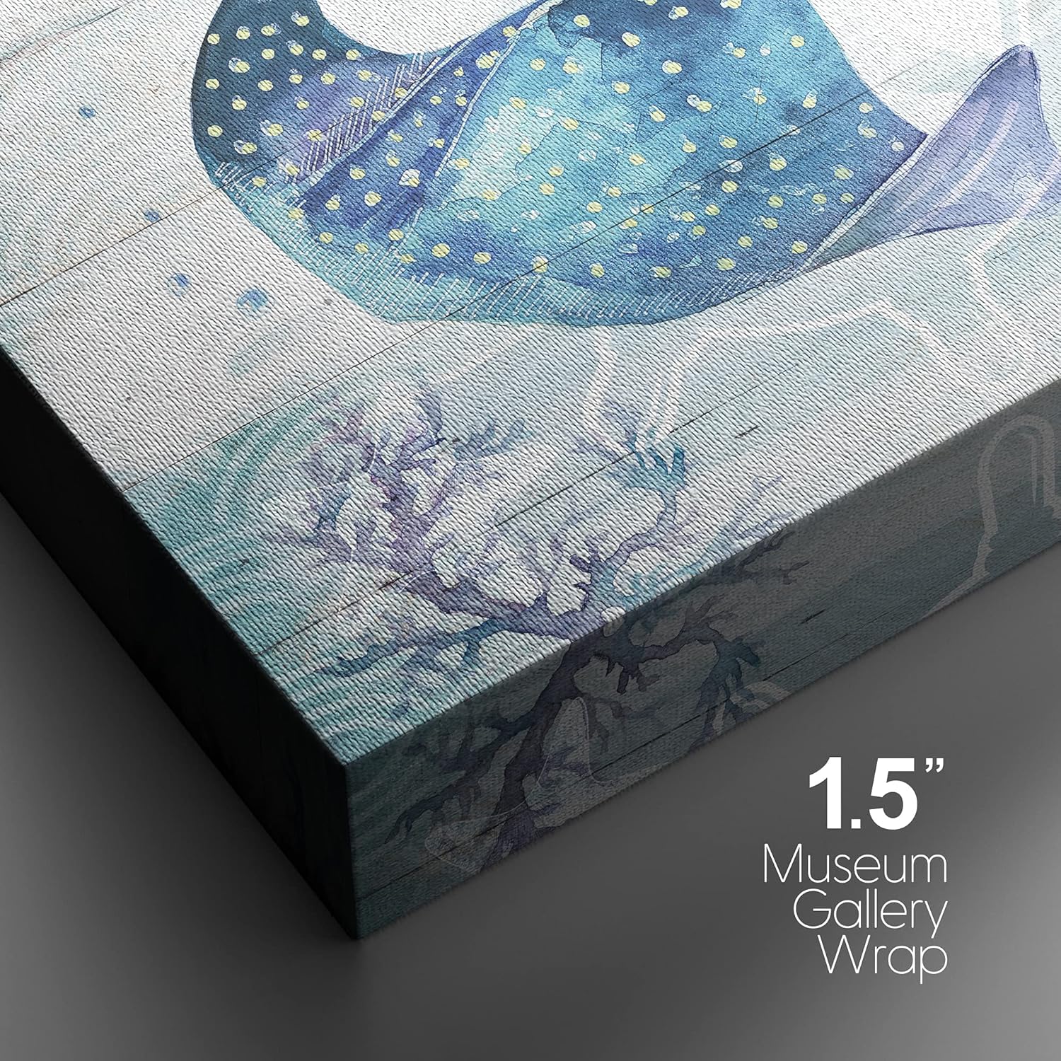 IDEA4WALL Canvas Print Wall Art Stingray Under The Sea Amphibians Beach Illustrations Modern Art Nautical Colorful Blue Ultra for Living Room, Bedroom, Office - 24"x36"