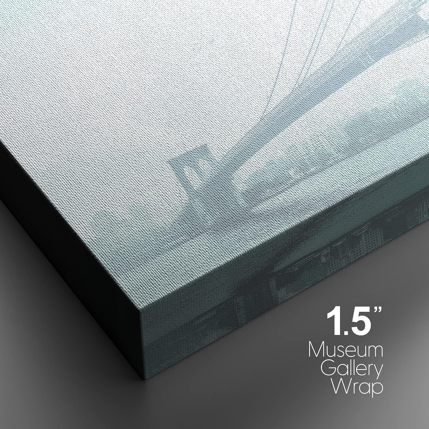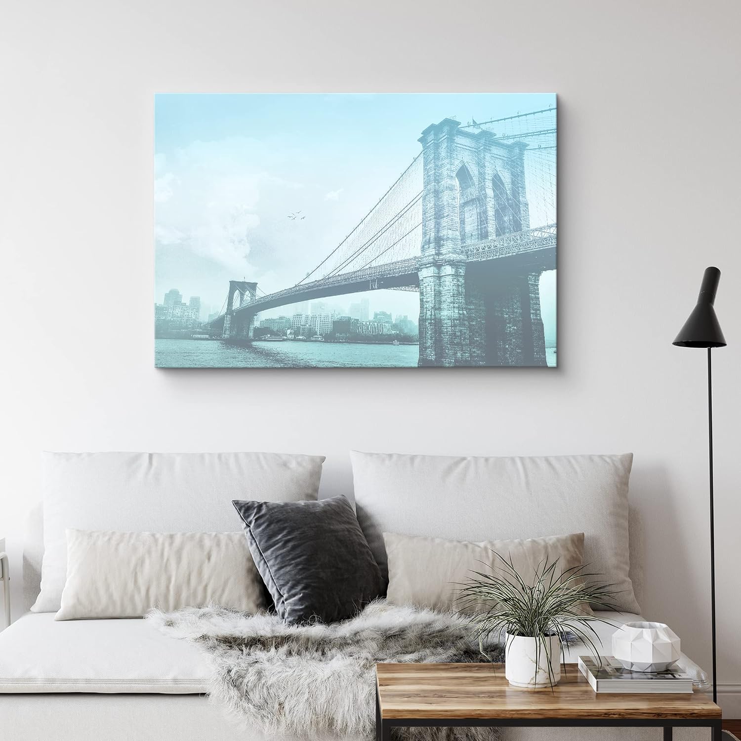 IDEA4WALL Canvas Print Wall Art Vintage Film Grain Brooklyn Bridge Architecture Maps Cities Photography Realism Rustic Scenic Colorful Blue Ultra for Living Room Bedroom Office