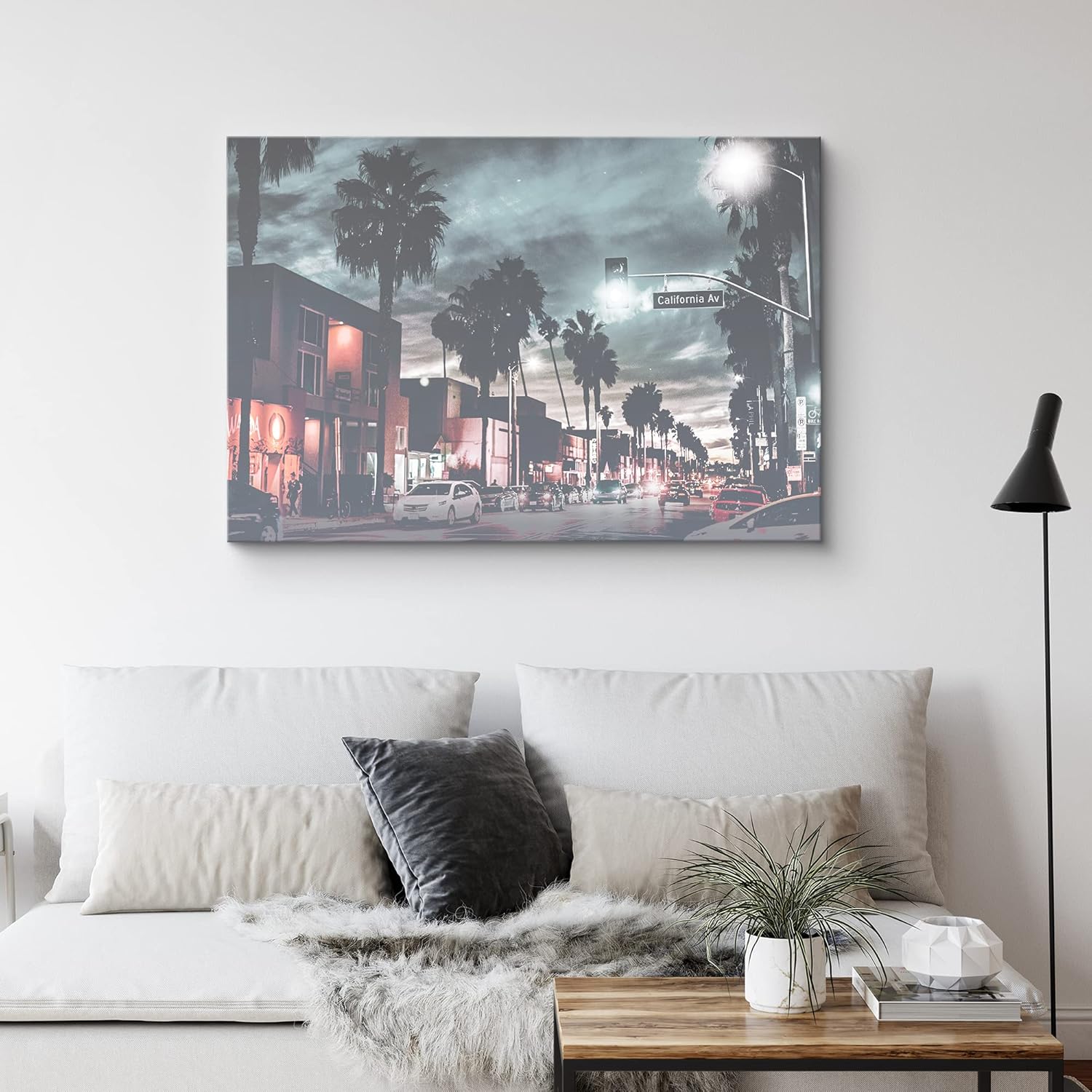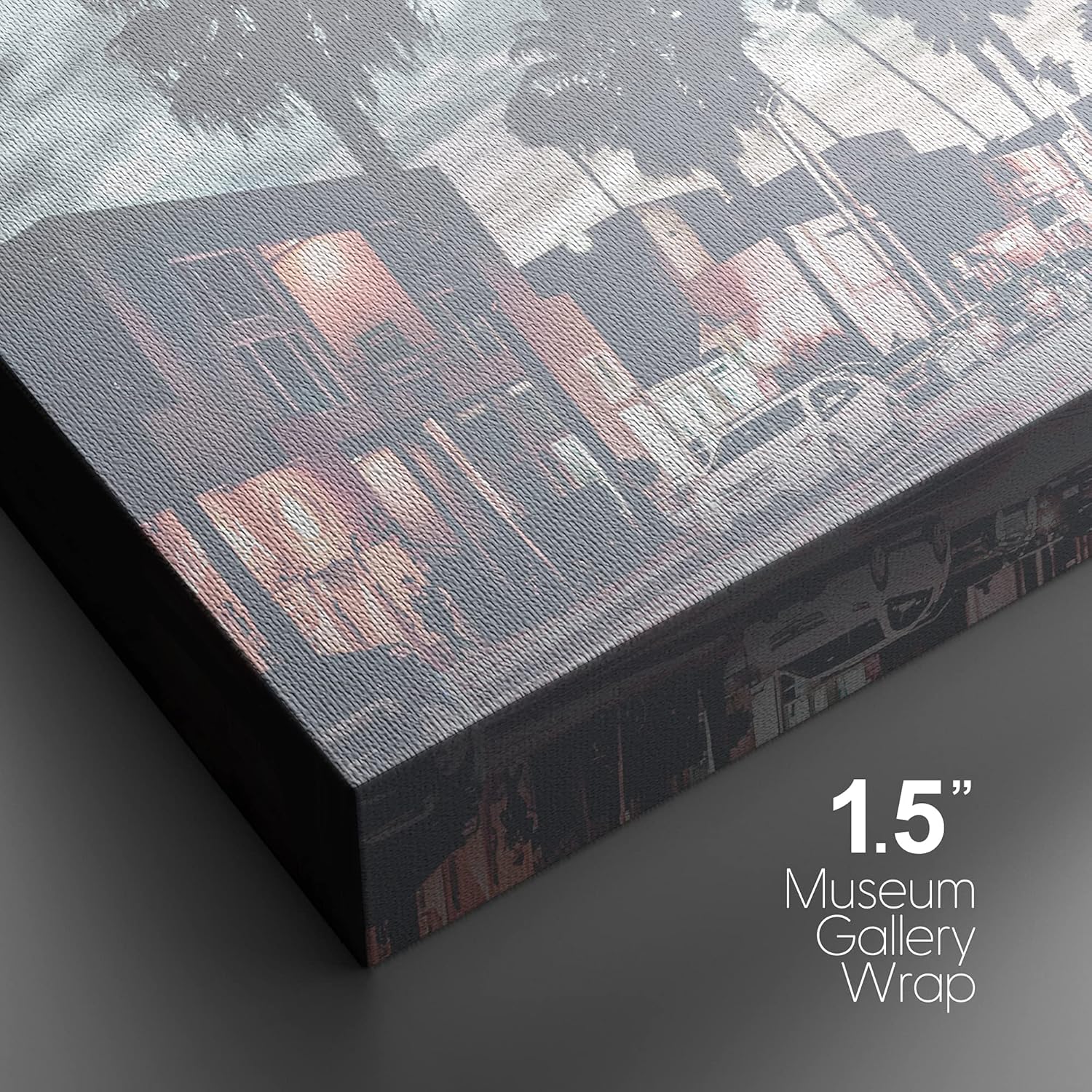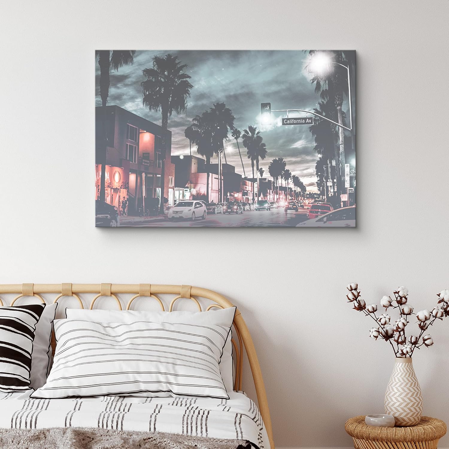 IDEA4WALL Canvas Print Wall Art Vintage Film Grain Los Angeles Shopping District Architecture Maps Cities Photography Realism Chic Scenic Colorful Blue Neon for Living Room Bedroom Office
