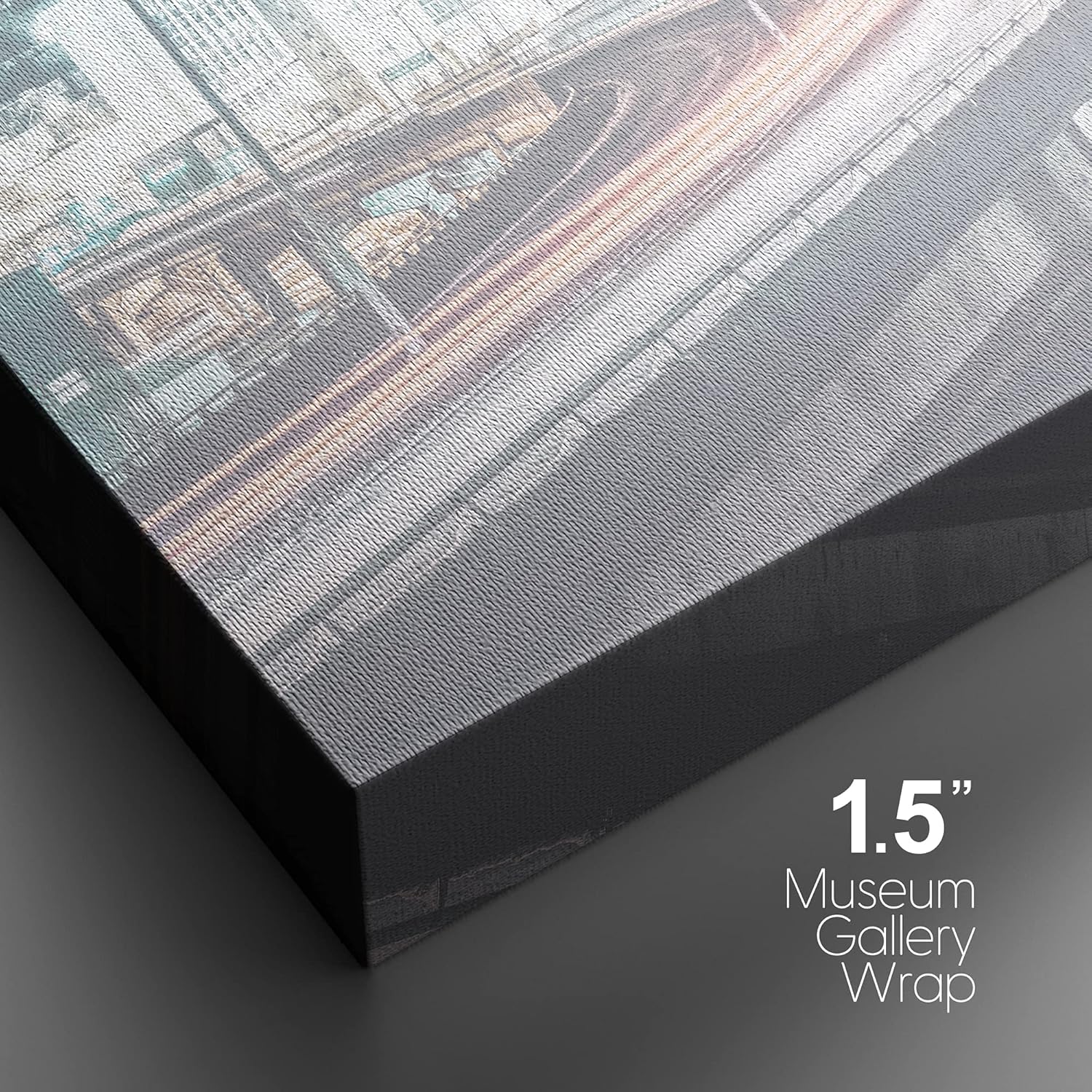 IDEA4WALL Canvas Print Wall Art Vintage Film Grain Speeding Cars on Freeway Architecture Maps Cities Photography Realism Chic Scenic Colorful Blue Neon for Living Room Bedroom Office
