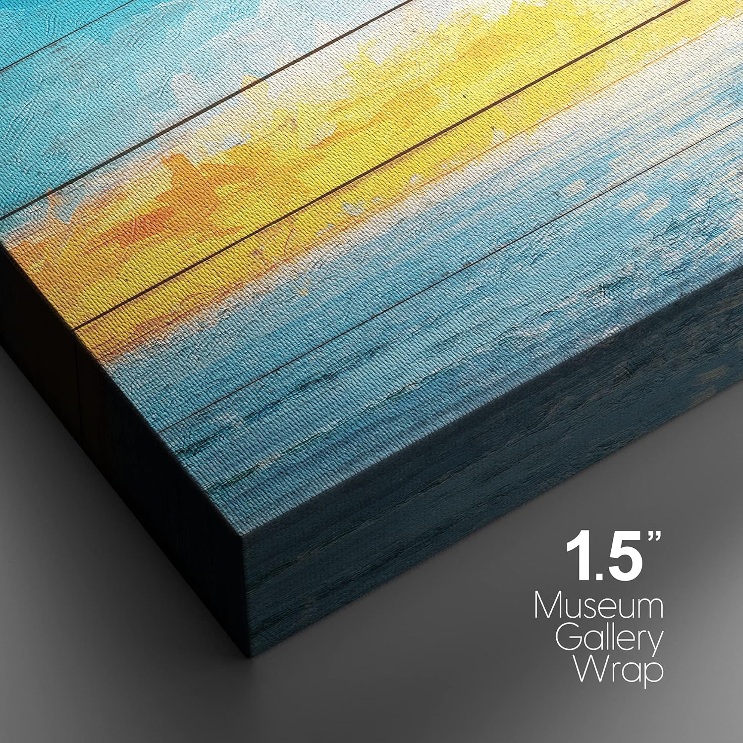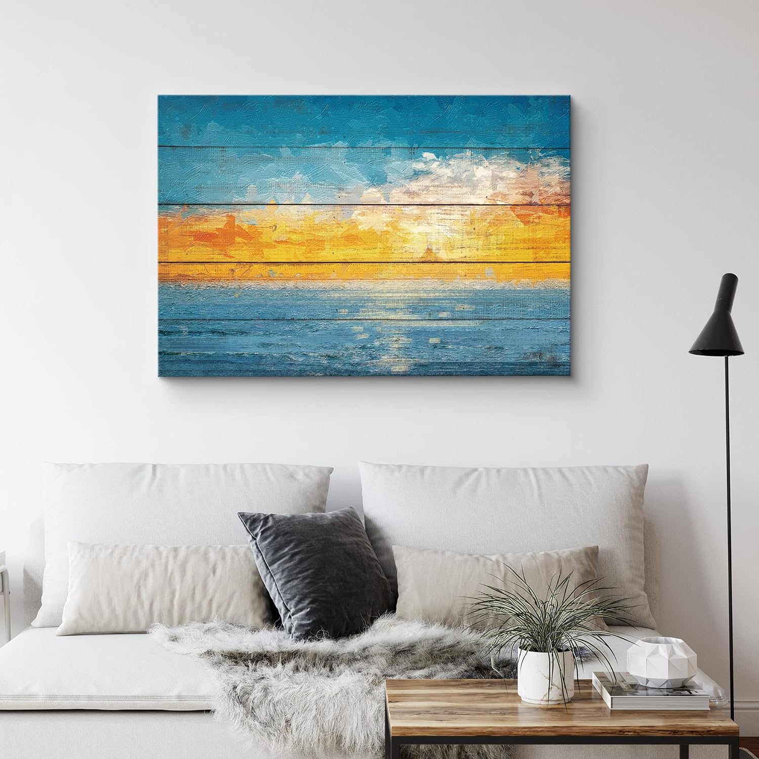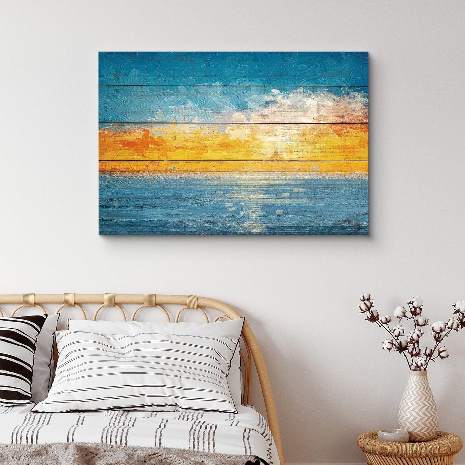 IDEA4WALL Canvas Print Wall Art Wood Panel Style Blue Orange Sea Horizon Nature Wilderness Illustrations Modern Art Contemporary Scenic Colorful Multicolor Ultra for Living Room Bedroom Office