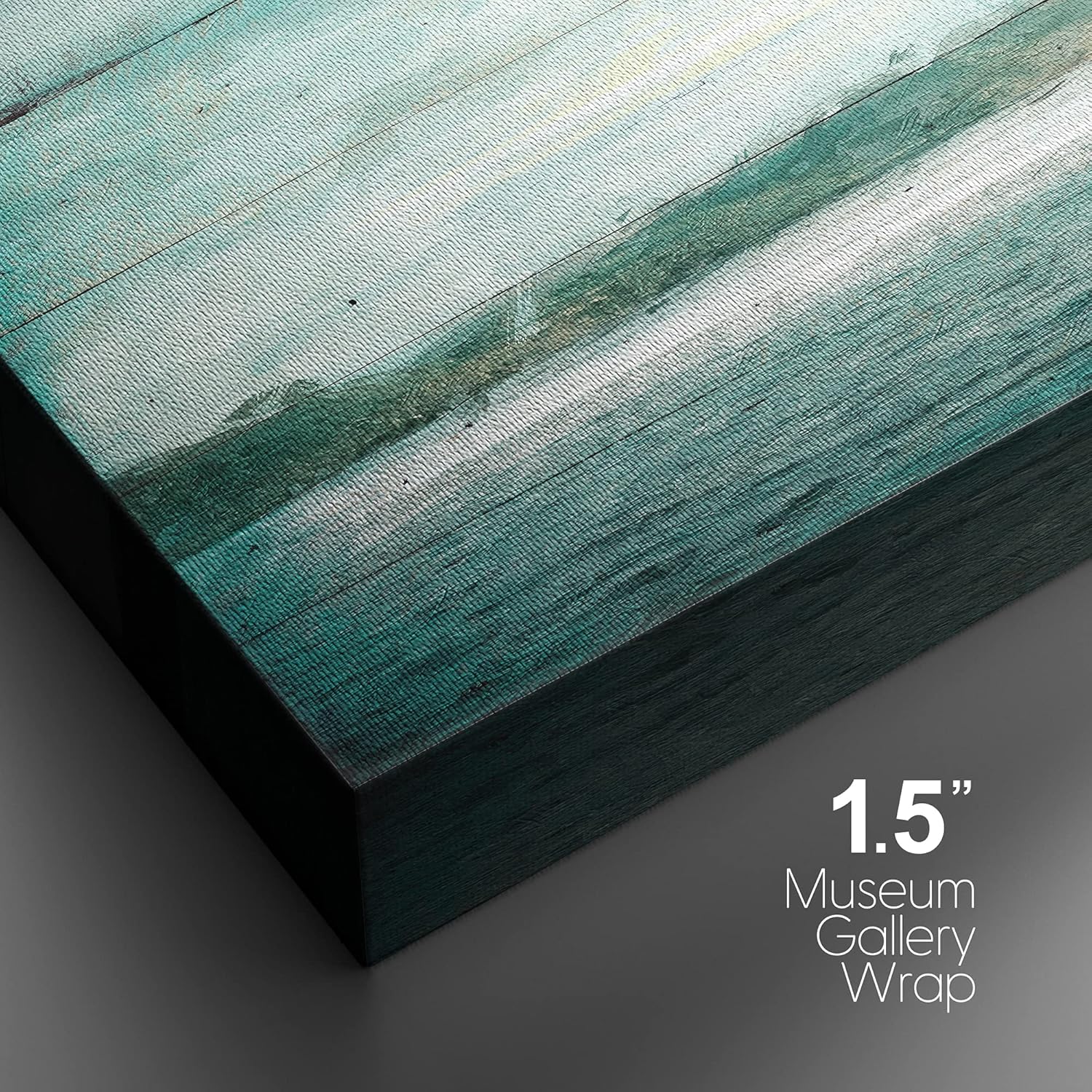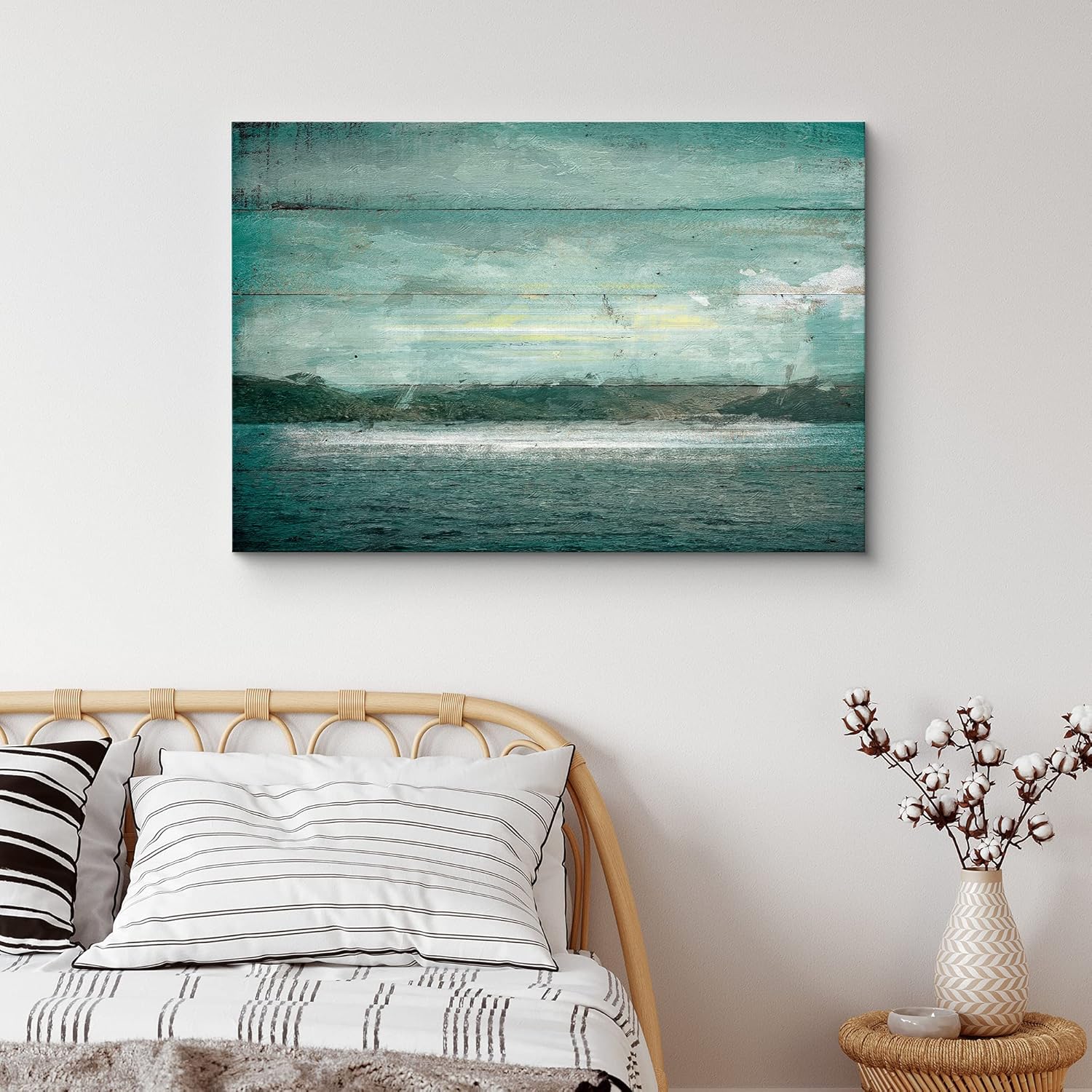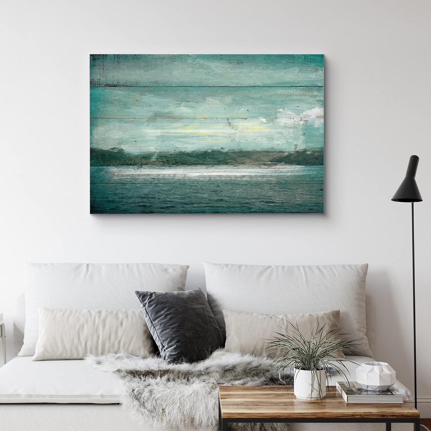 IDEA4WALL Canvas Print Wall Art Wood Panel Style Teal Beach Horizon Nature Wilderness Illustrations Modern Art Contemporary Scenic Colorful Multicolor Ultra for Living Room Bedroom Office