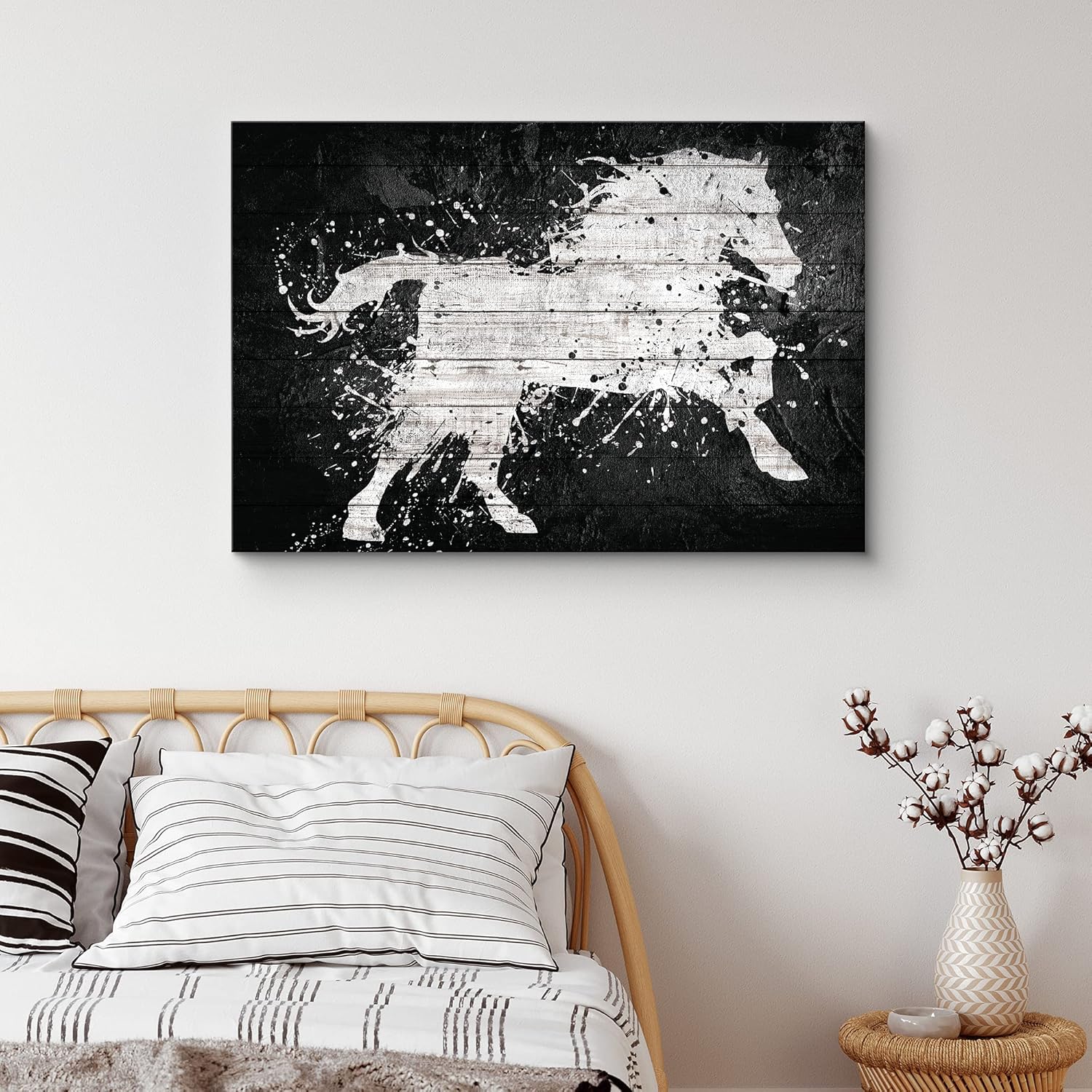 IDEA4WALL Canvas Print Wall Art Wood Panel Style White Horse Silhouette Animals Wildlife Illustrations Modern Art Contemporary Portrait Relax/Calm Multicolor Warm for Living Room, Bedroom, Office - 32"x48"