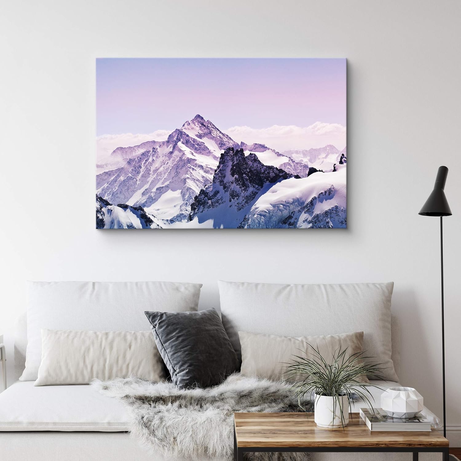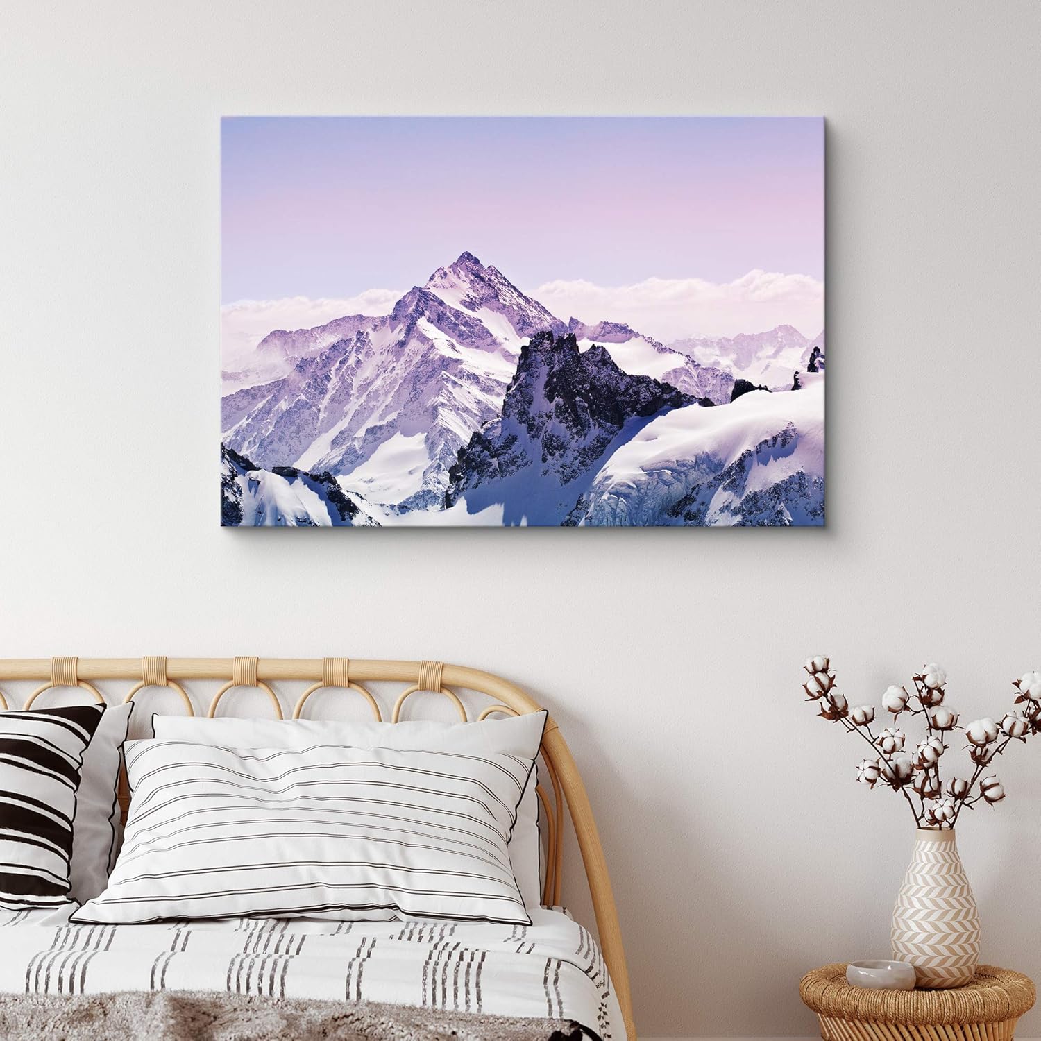 IDEA4WALL Canvas Wall Art A Pink Cloudy Sky with Snowy Mountains Landscape Wilderness Photography Realism Modern Scenic Urban for Living Room Bedroom Office inches