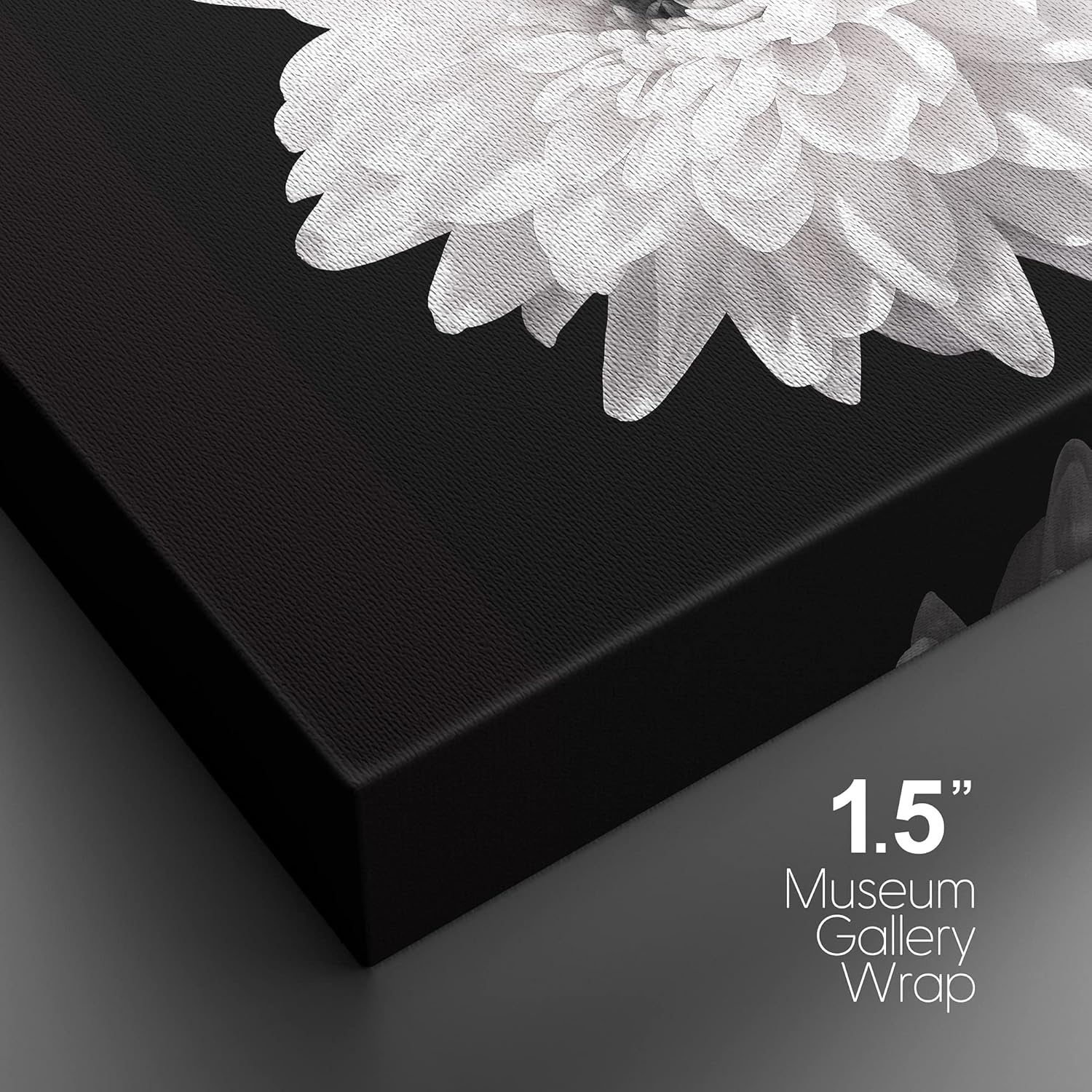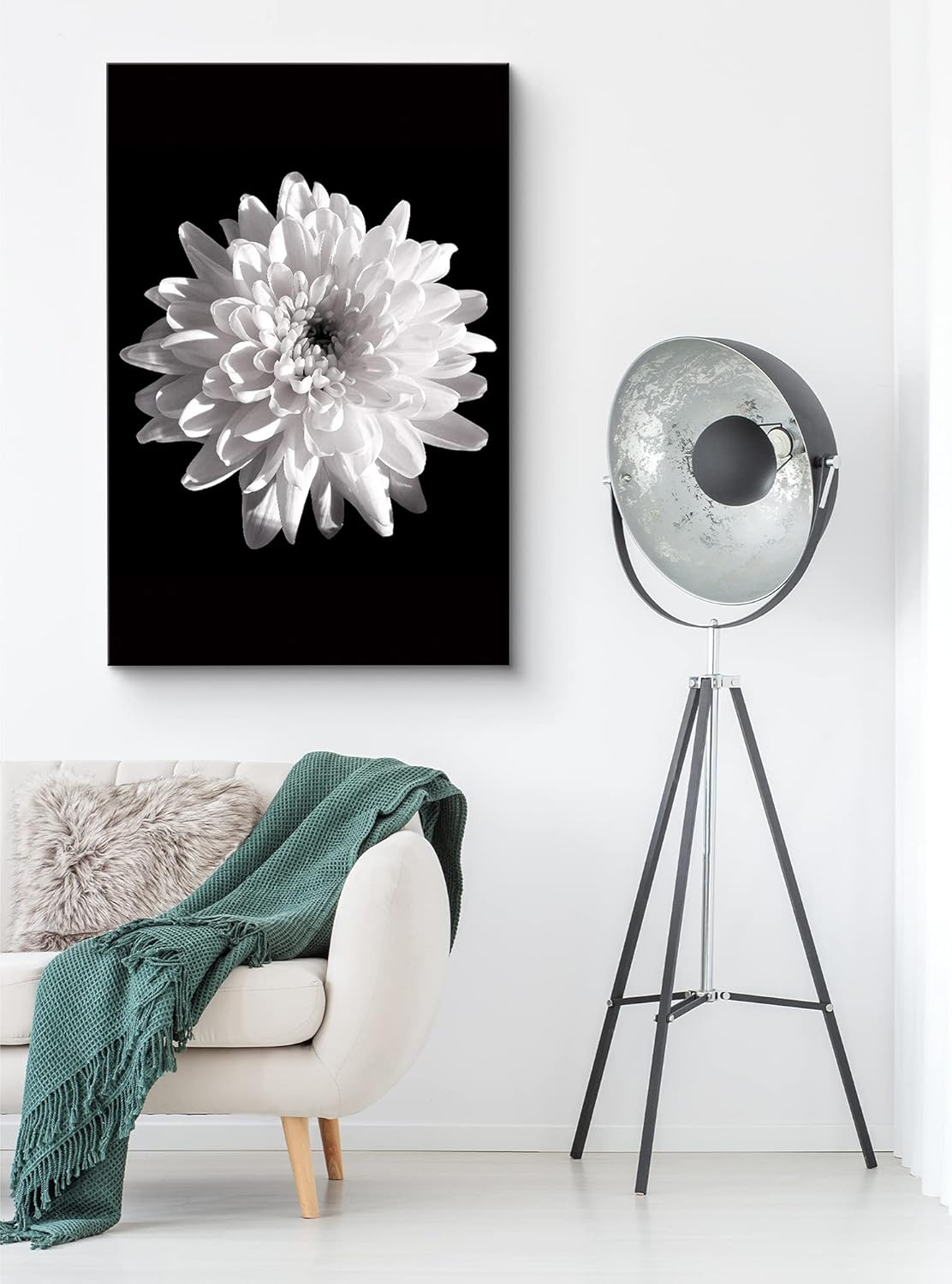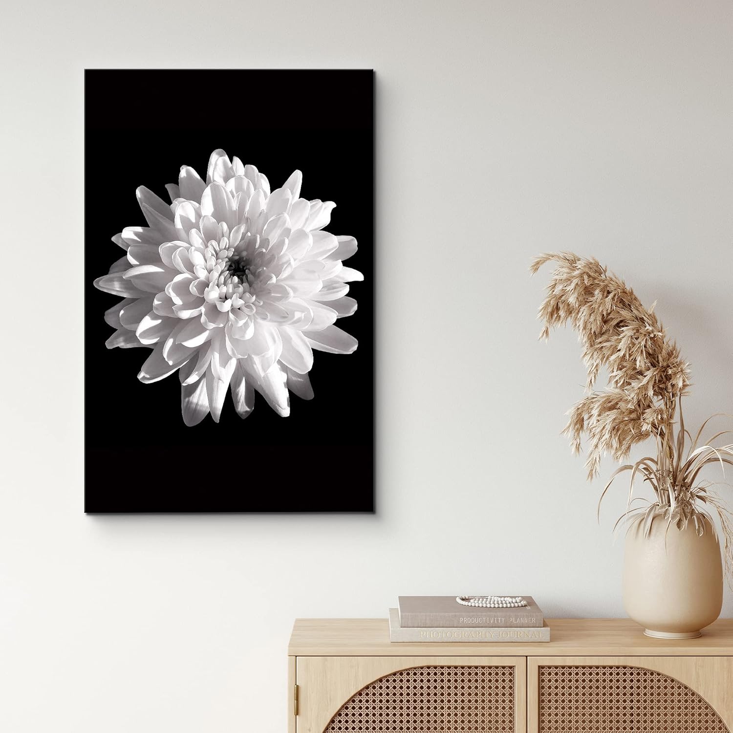 IDEA4WALL Canvas Wall Art Blooming Chrysanthemum Floral Flower Photography Minimalism Modern Closeup Dramatic Black and White for Living Room Bedroom Office inches