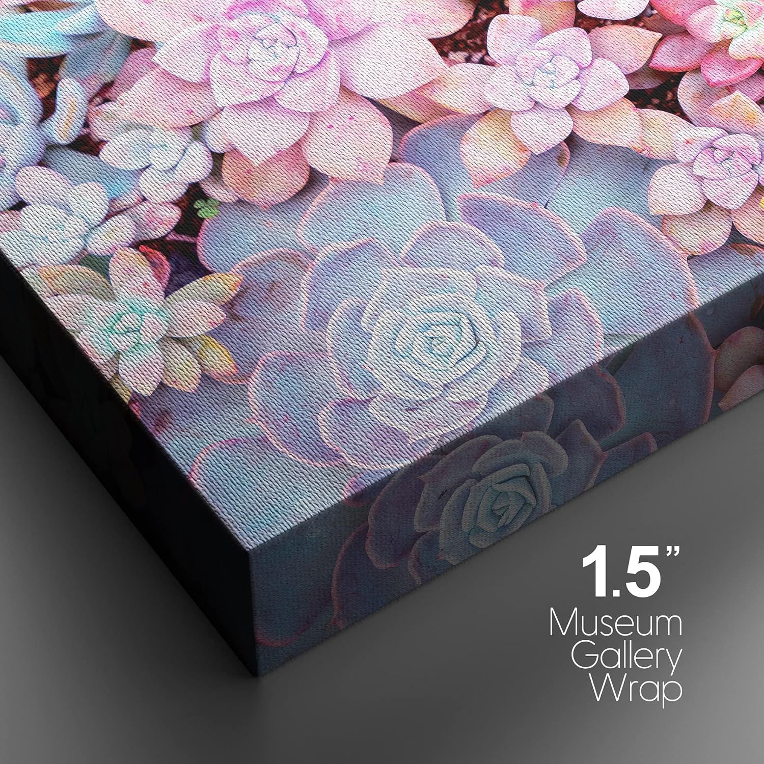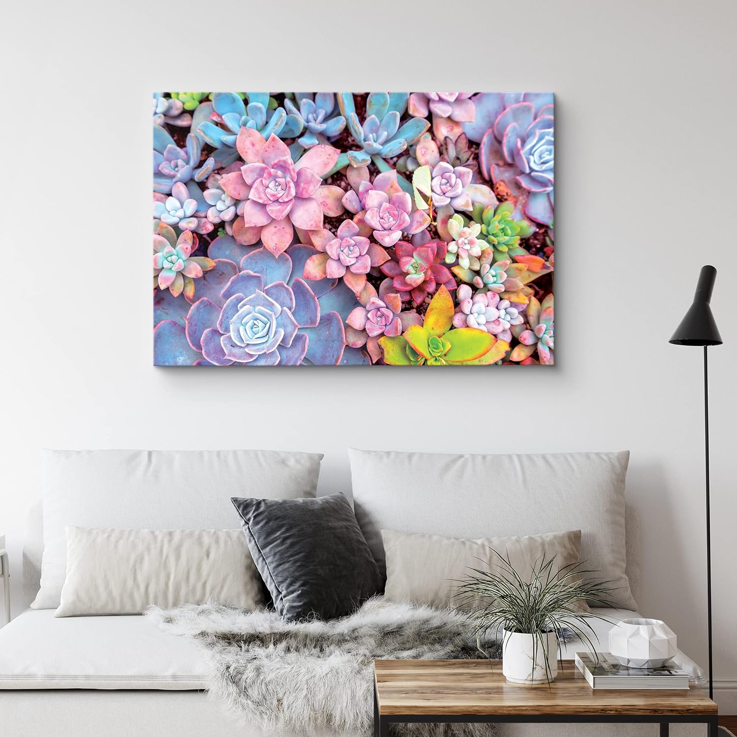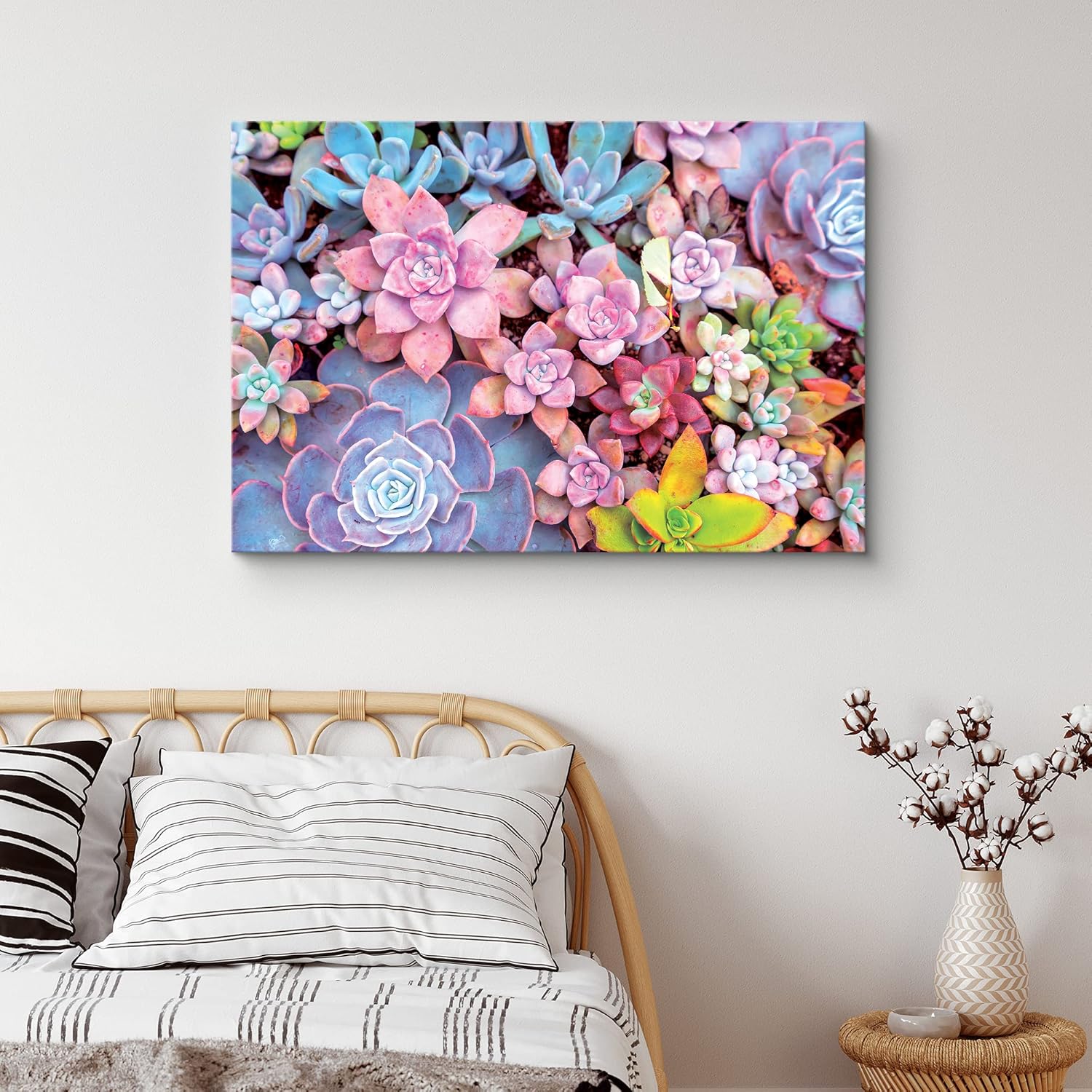 IDEA4WALL Canvas Wall Art Bouquet of Red Blue Pink and Yellow Small Echeveria Cactus Botanical Succulent Digital Art Realism Farmhouse Country Colorful for Living Room Bedroom Office