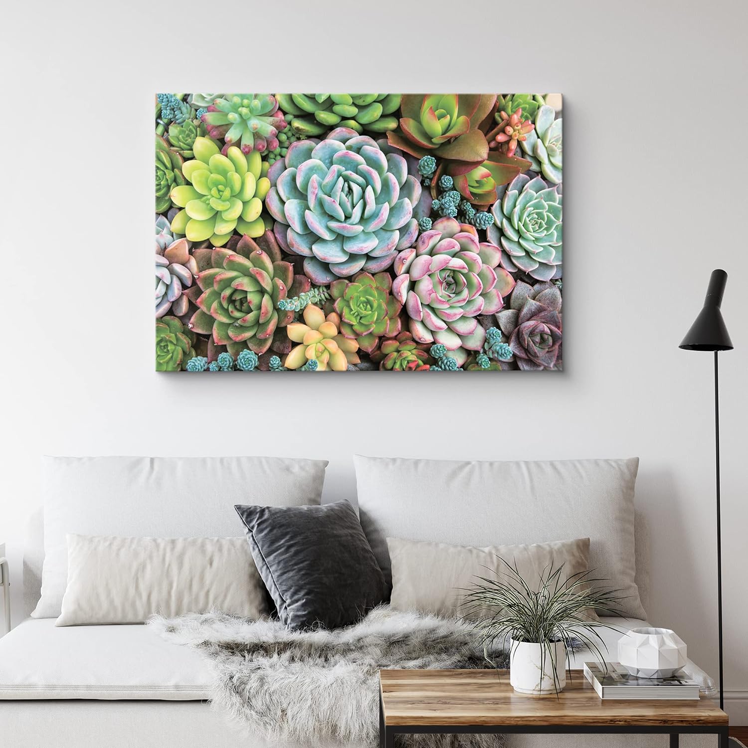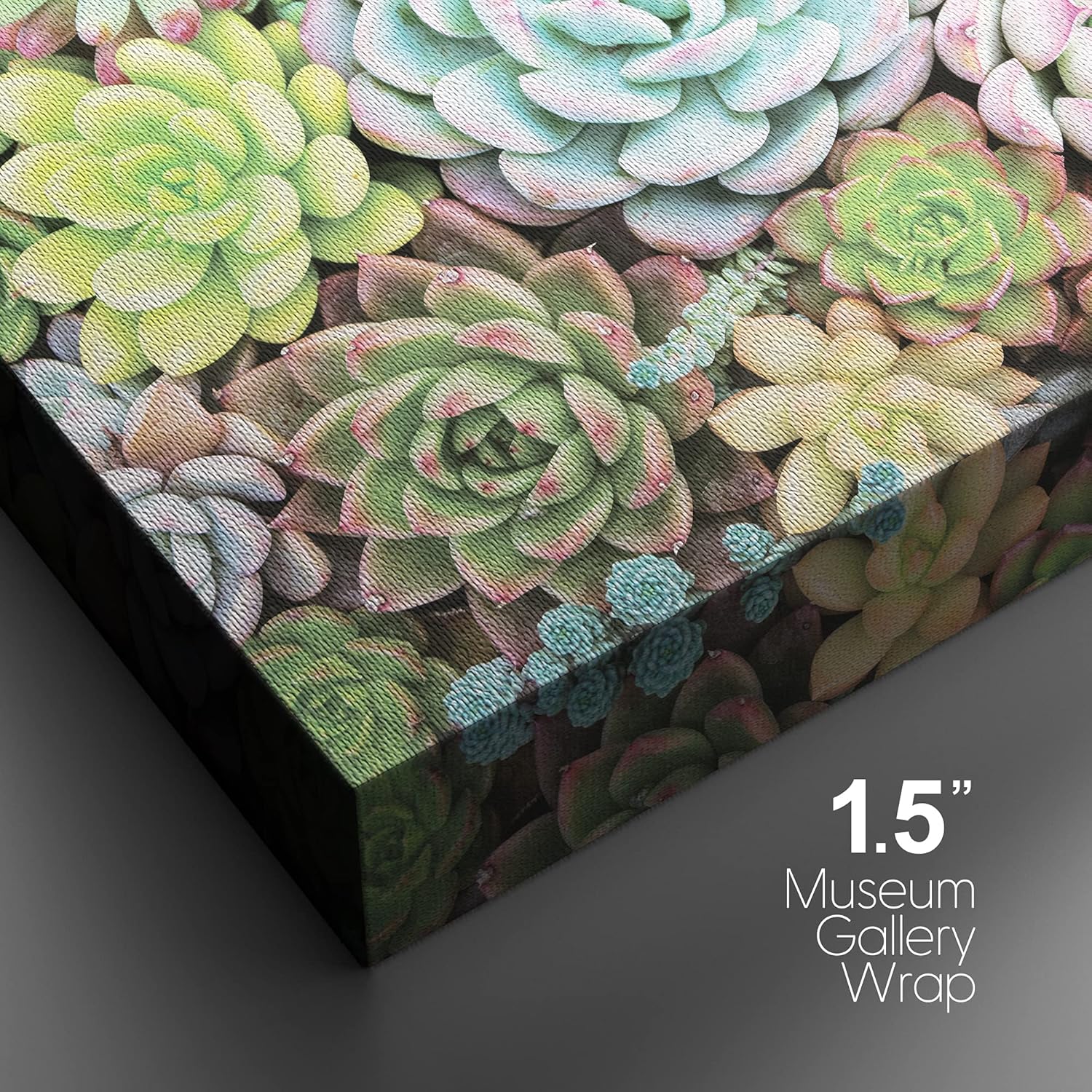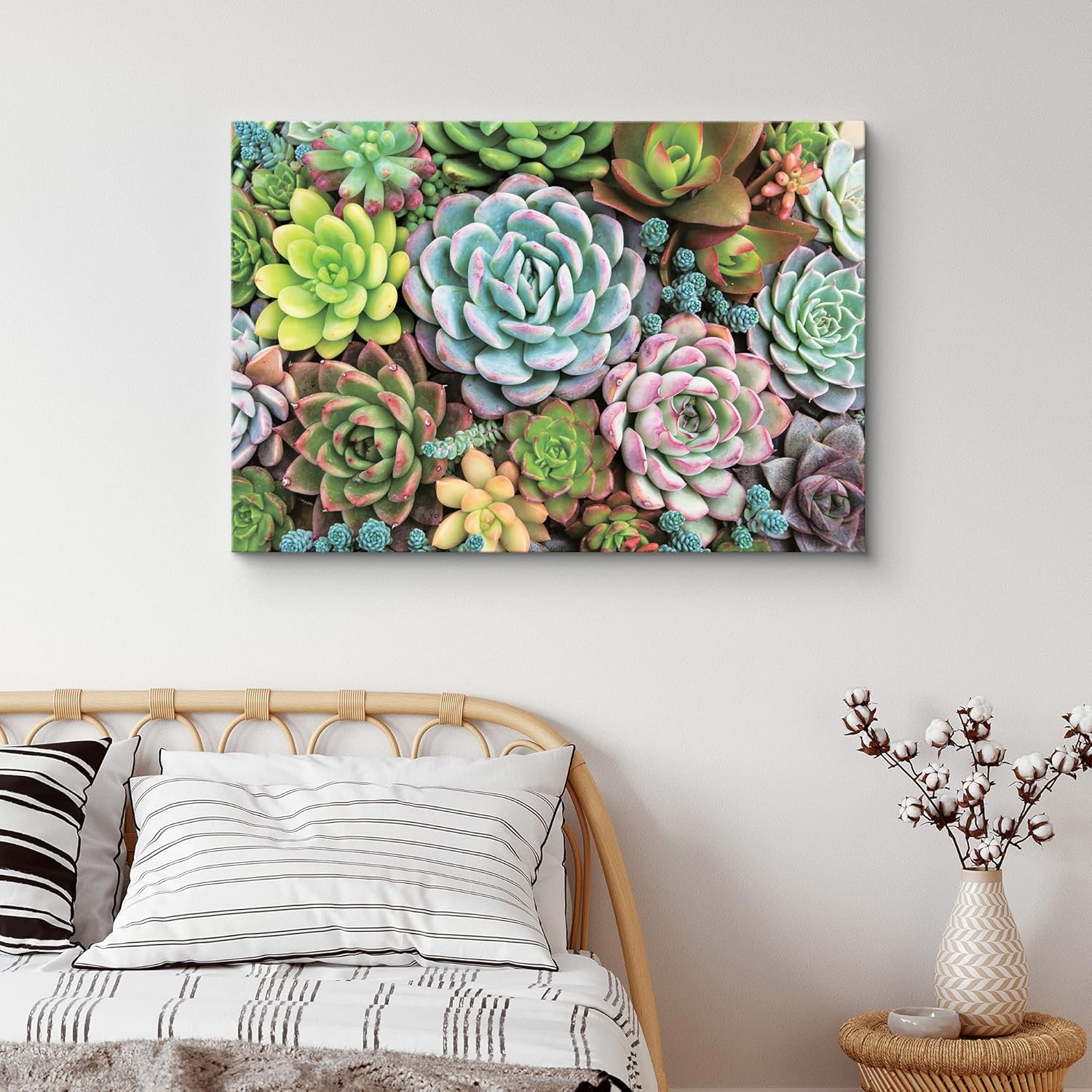 IDEA4WALL Canvas Wall Art Bouquet of Red Blue Pink Green and Yellow Small Echeveria Cactus Botanical Succulent Digital Art Realism Farmhouse Country for Living Room Bedroom Office