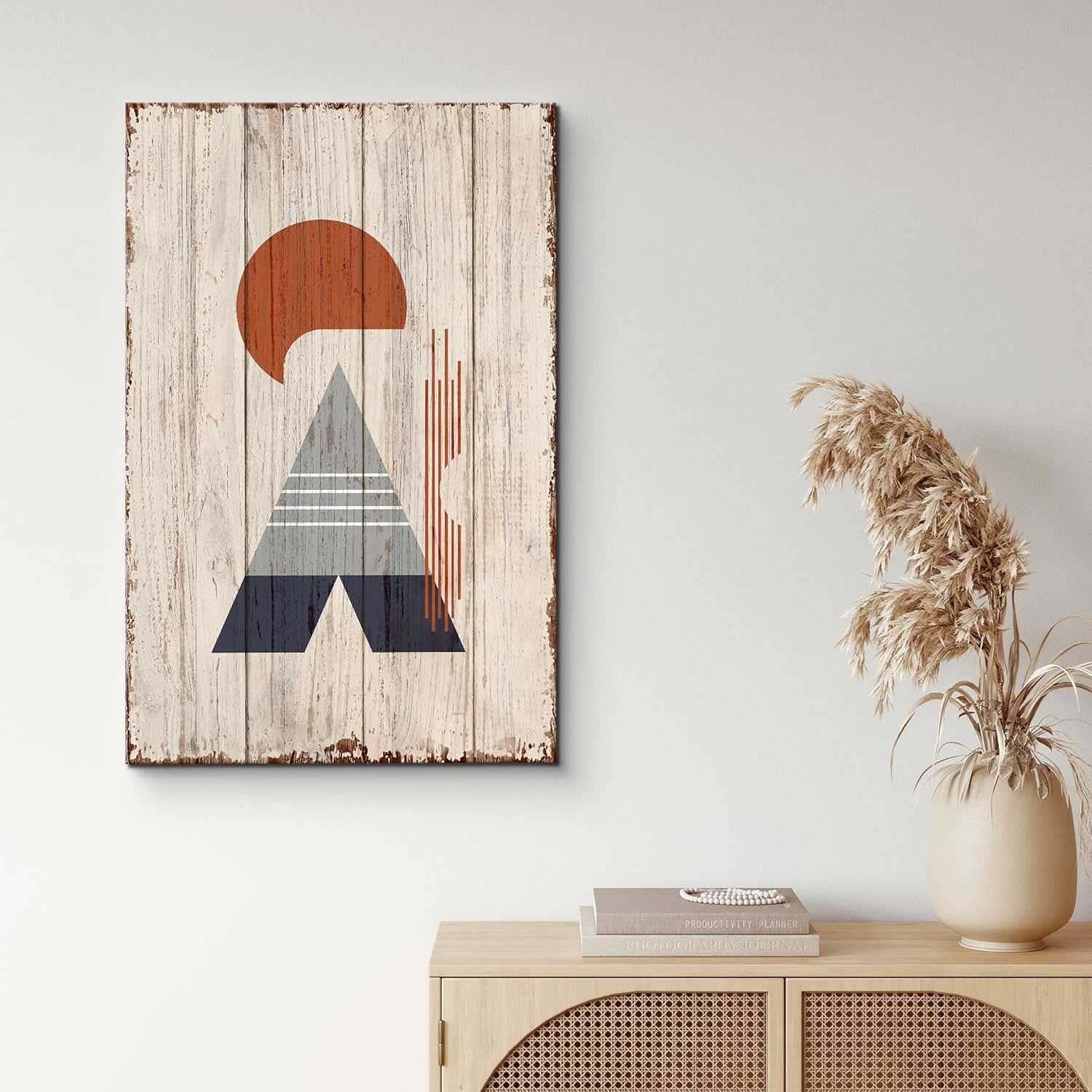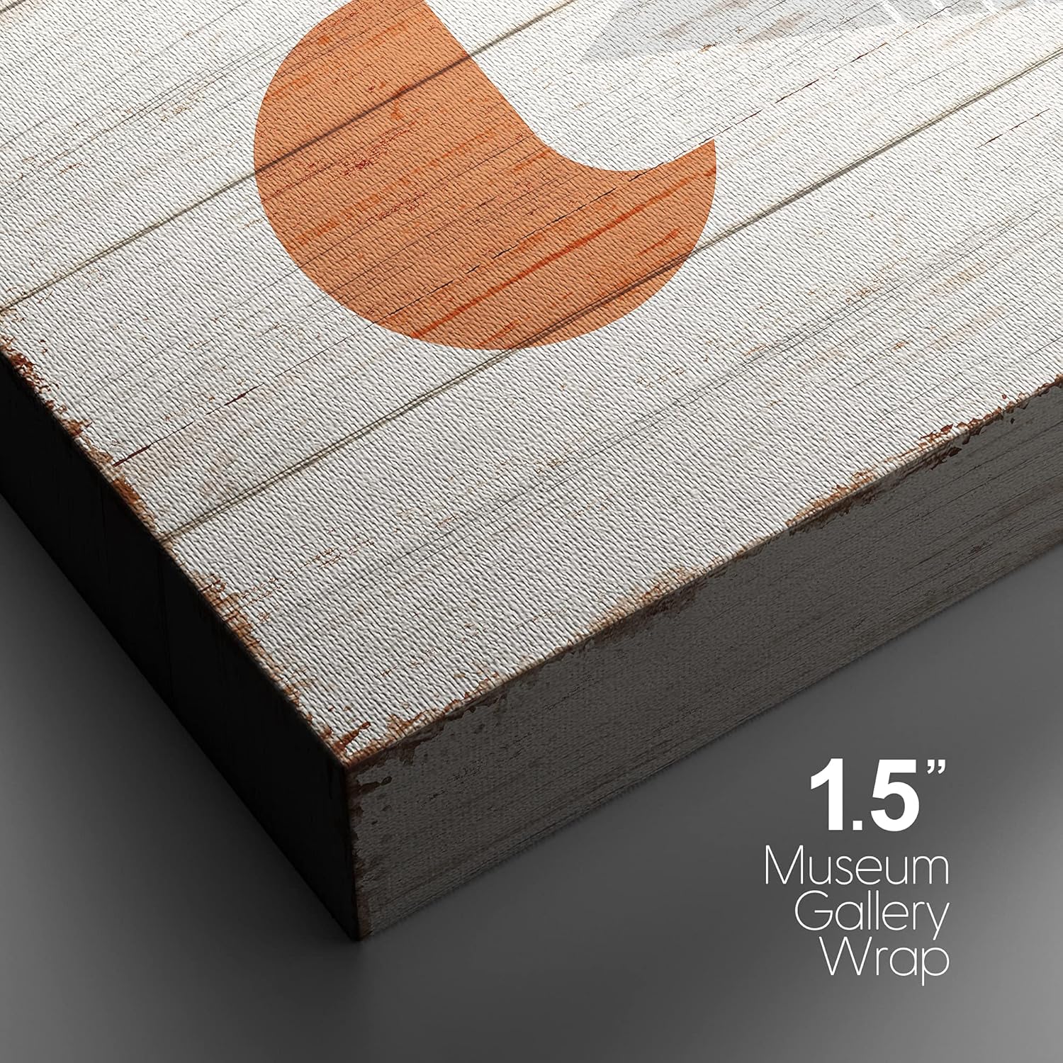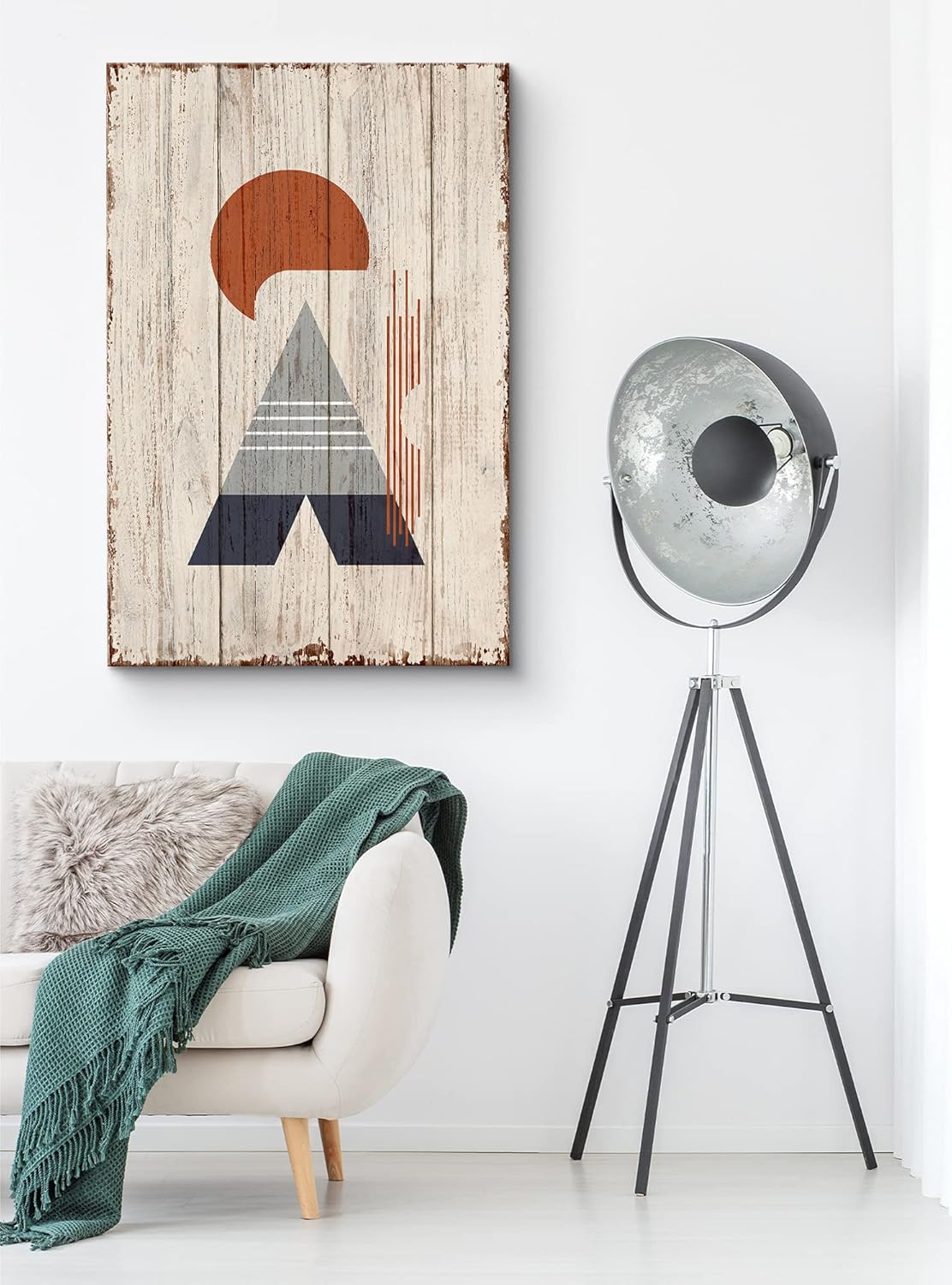 IDEA4WALL Canvas Wall Art Orange Circle Gray and Black Triangle with White Lines in Wood Panel Geometric Shapes Illustrations Modern Art Rustic Urban for Living Room Bedroom Office