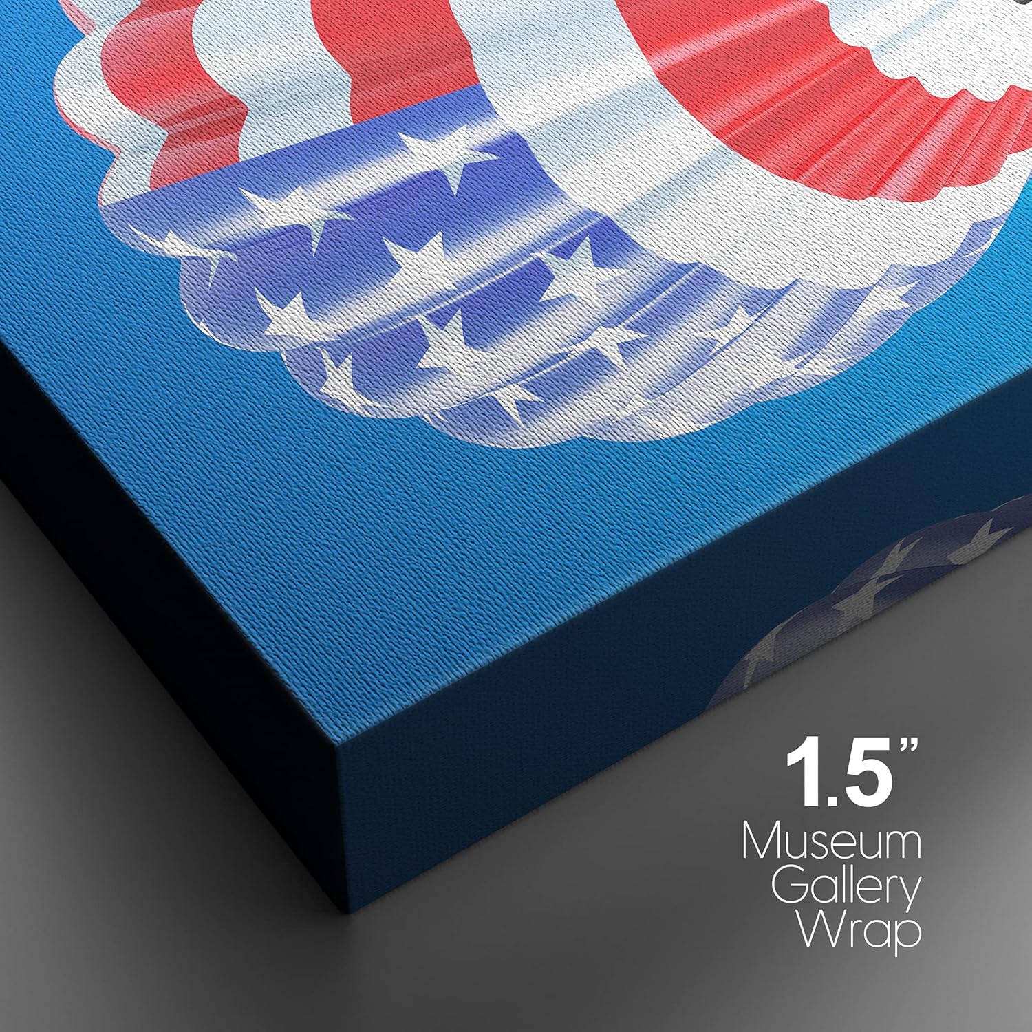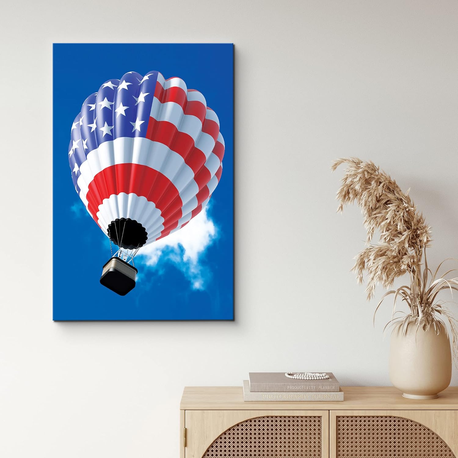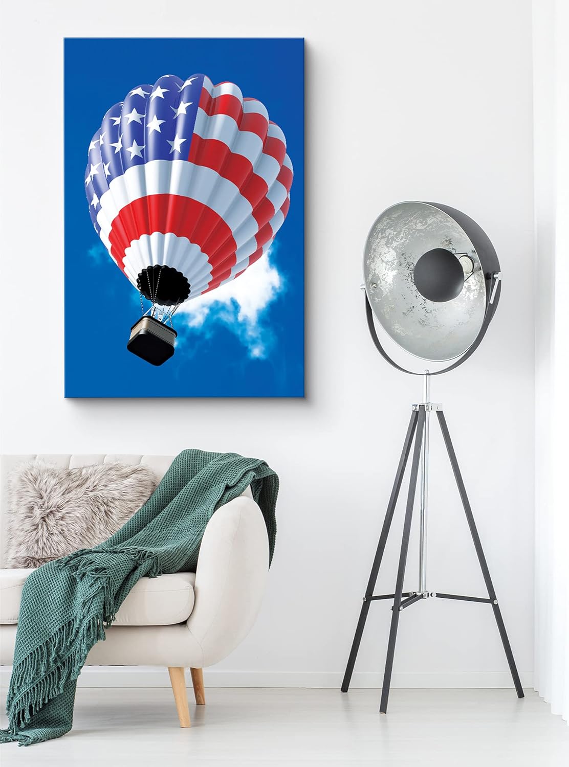 IDEA4WALL Canvas Wall Art Patriotic American Flag Color Hot Air Balloon with Flying Basket Transportation Sky Photography Realism Bohemian Aerial Colorful for Living Room Bedroom Office