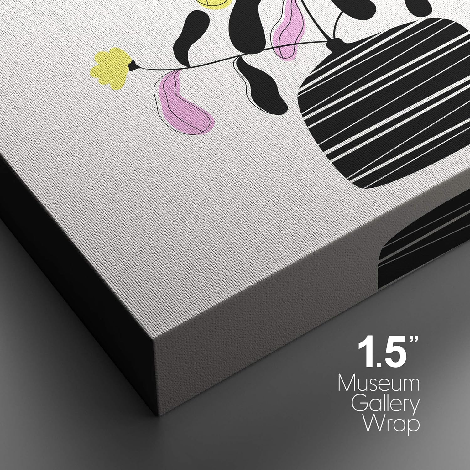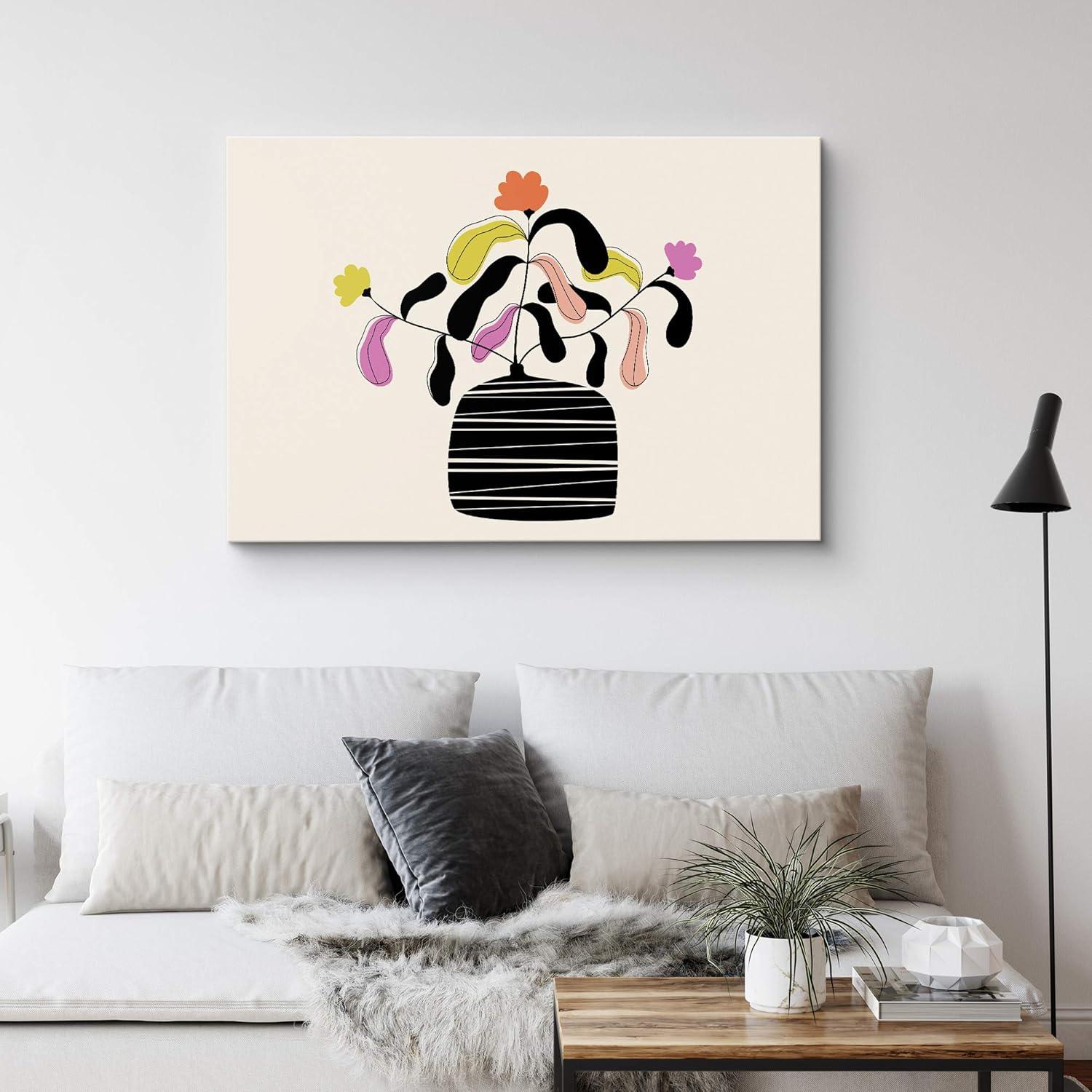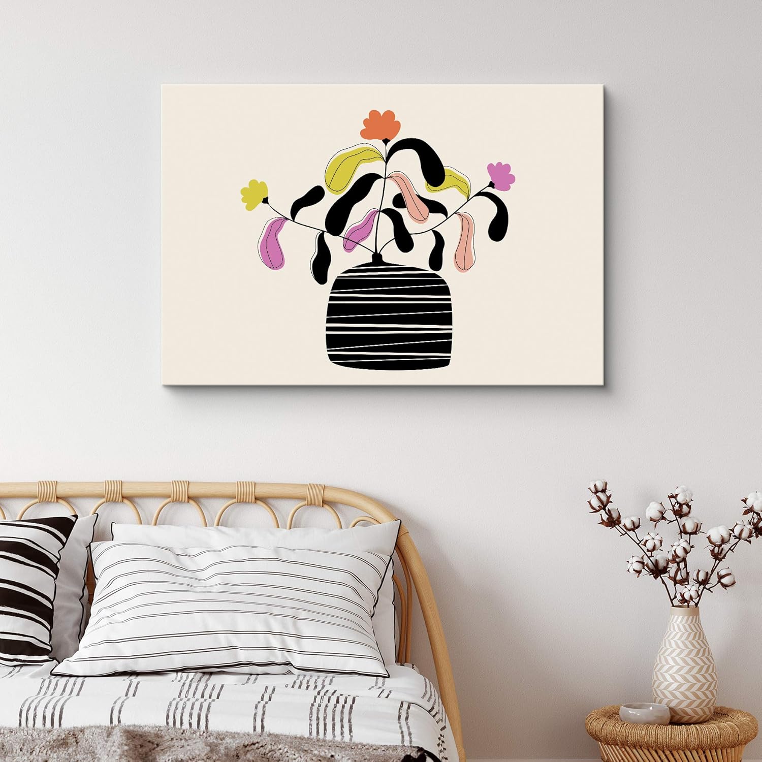 IDEA4WALL Canvas Wall Art Pink Orange and Yellow Daisy in a Black Vase with White Background Botanical Plants Illustrations Pop Art Modern Colorful Ultra for Living Room Bedroom Office inches