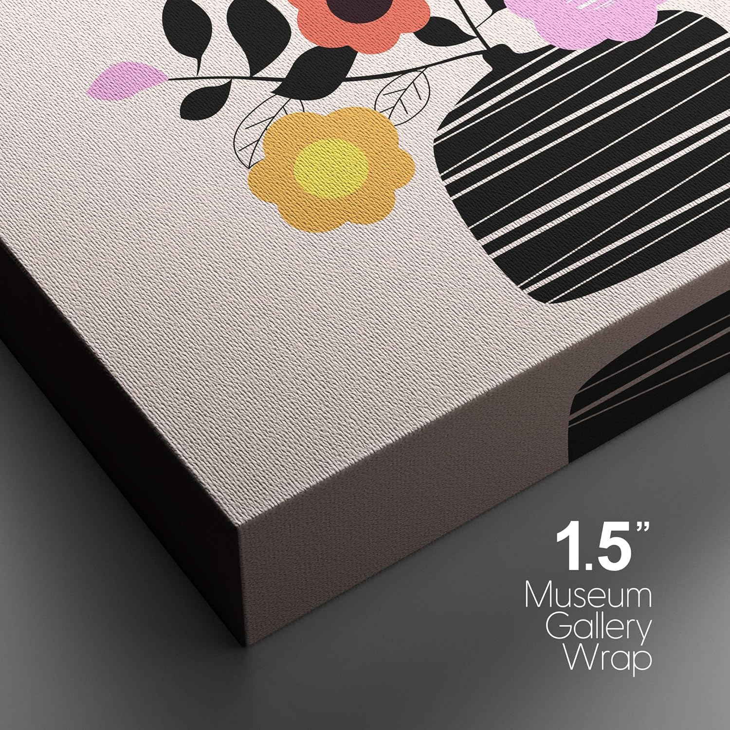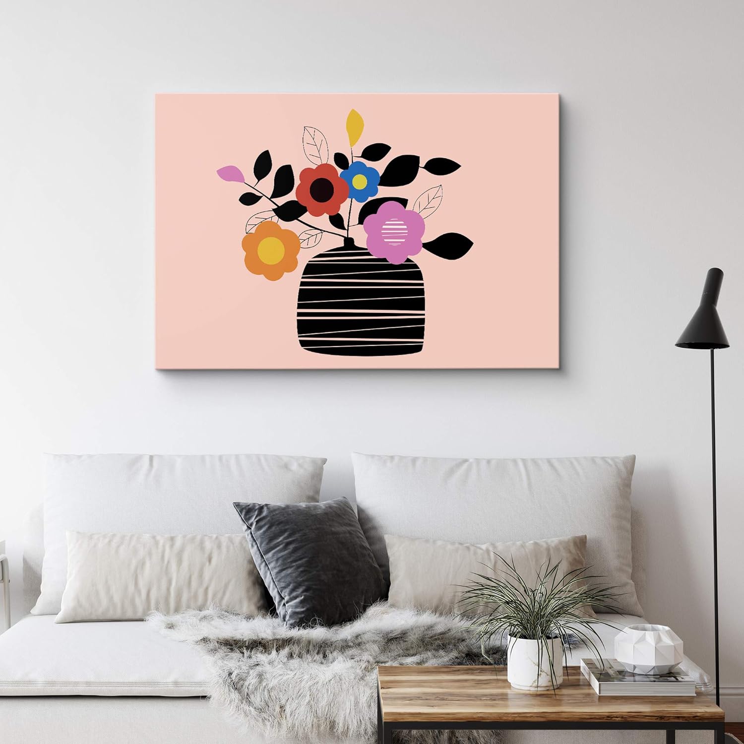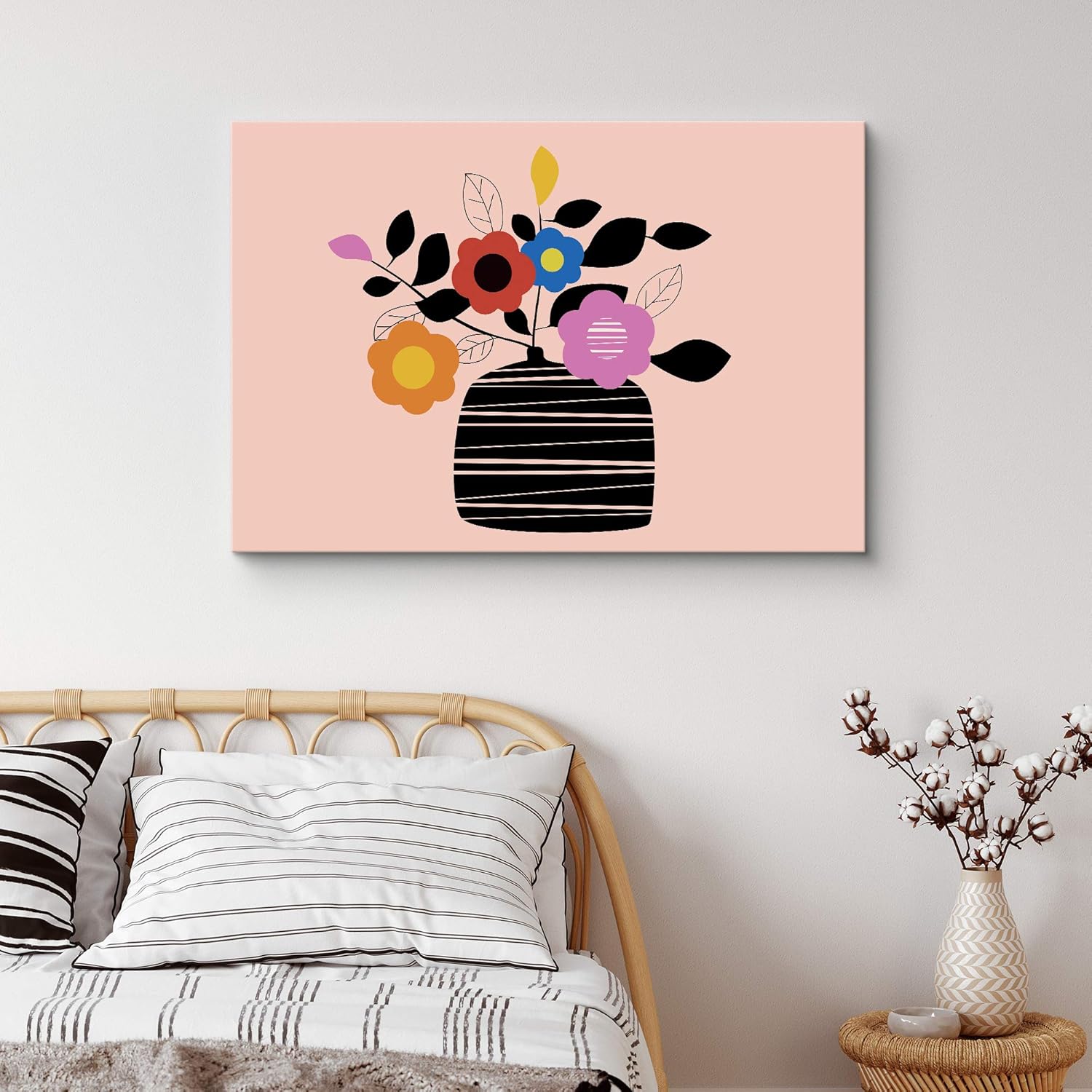 IDEA4WALL Canvas Wall Art Red Orange and Blue Daisy in a Black Vase with Pink Background Botanical Plants Illustrations Pop Art Modern Colorful Ultra for Living Room Bedroom Office inches