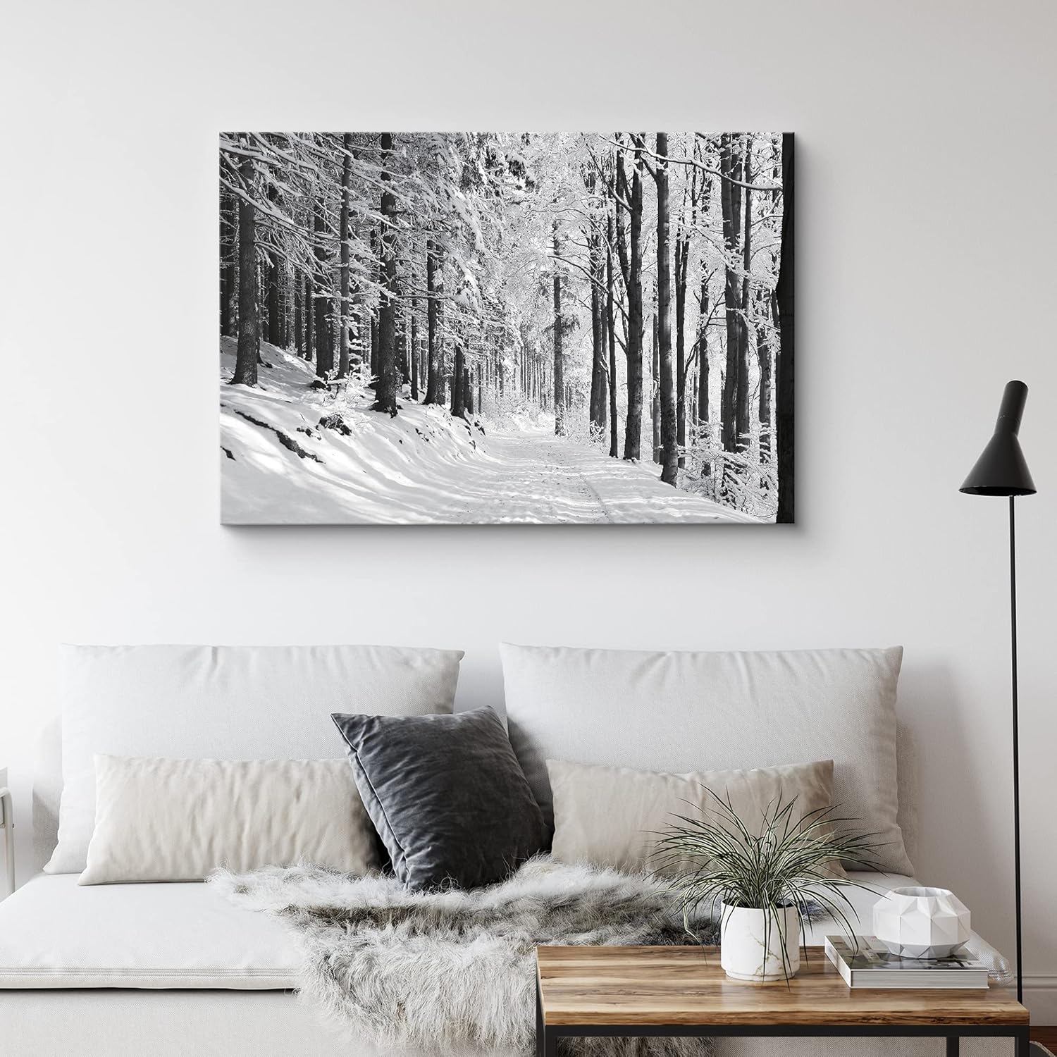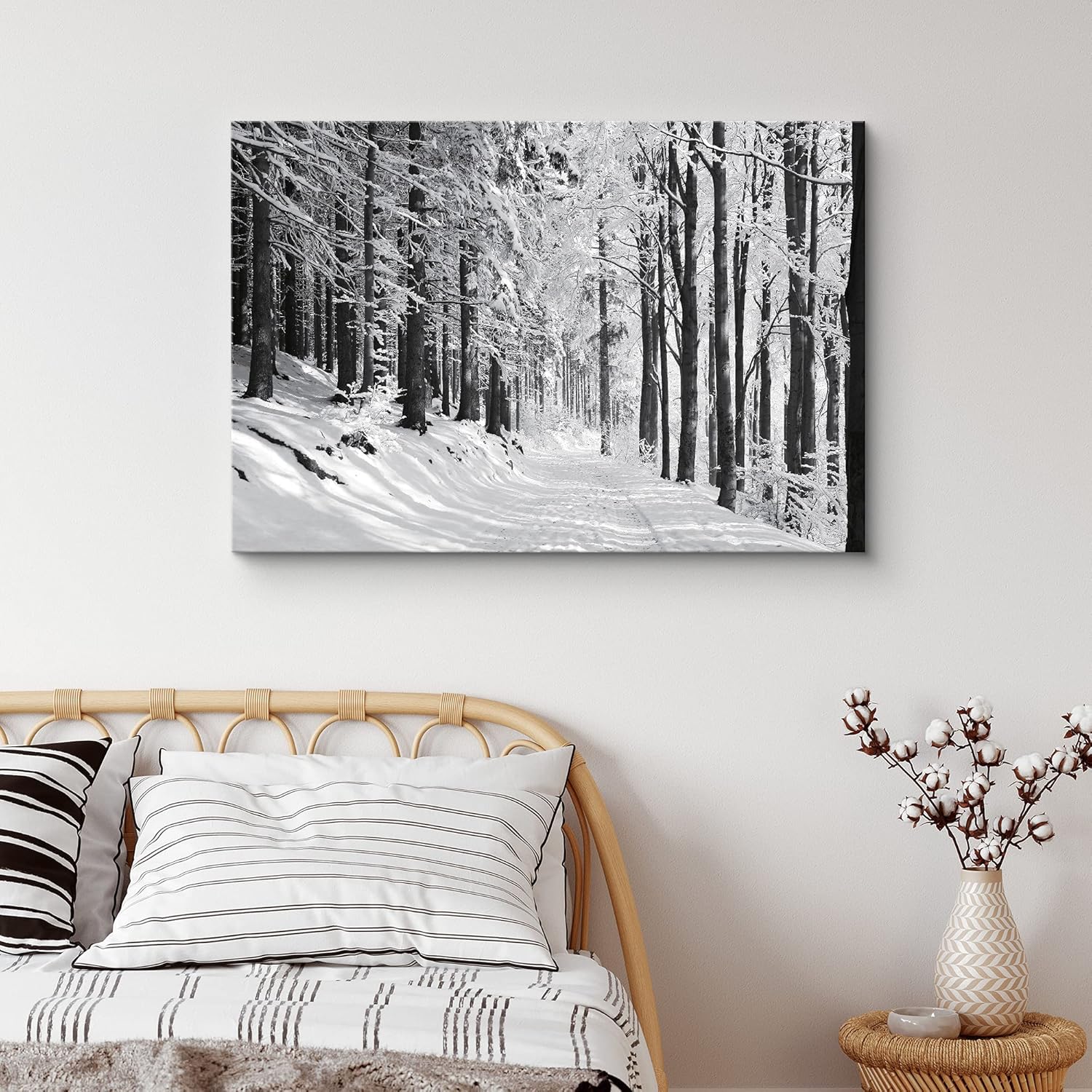 IDEA4WALL Canvas Wall Art Small Path Through Trees in Snowy Winter Time Nature Forest Photography Realism Traditional Scenic Dramatic Black and White for Living Room Bedroom Office