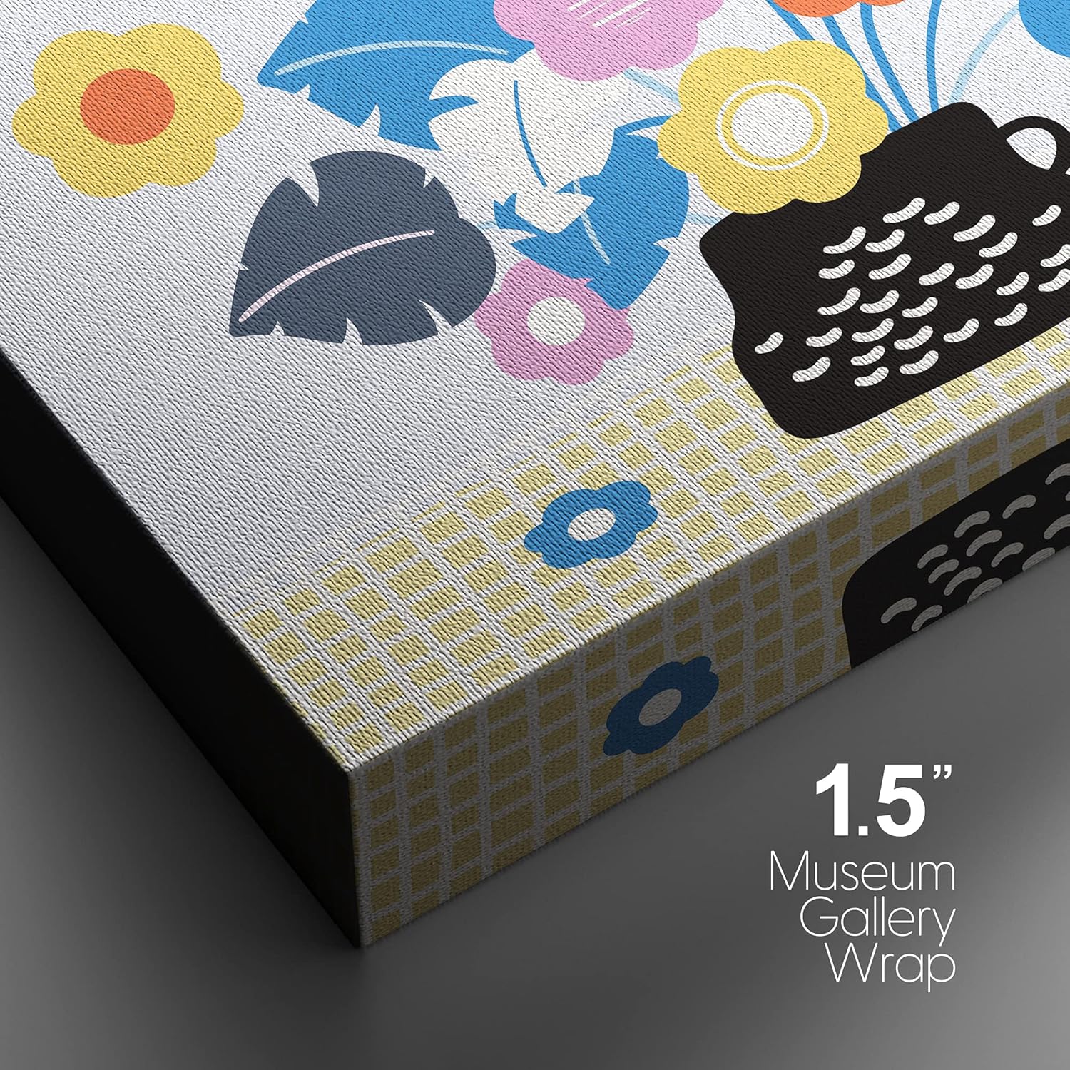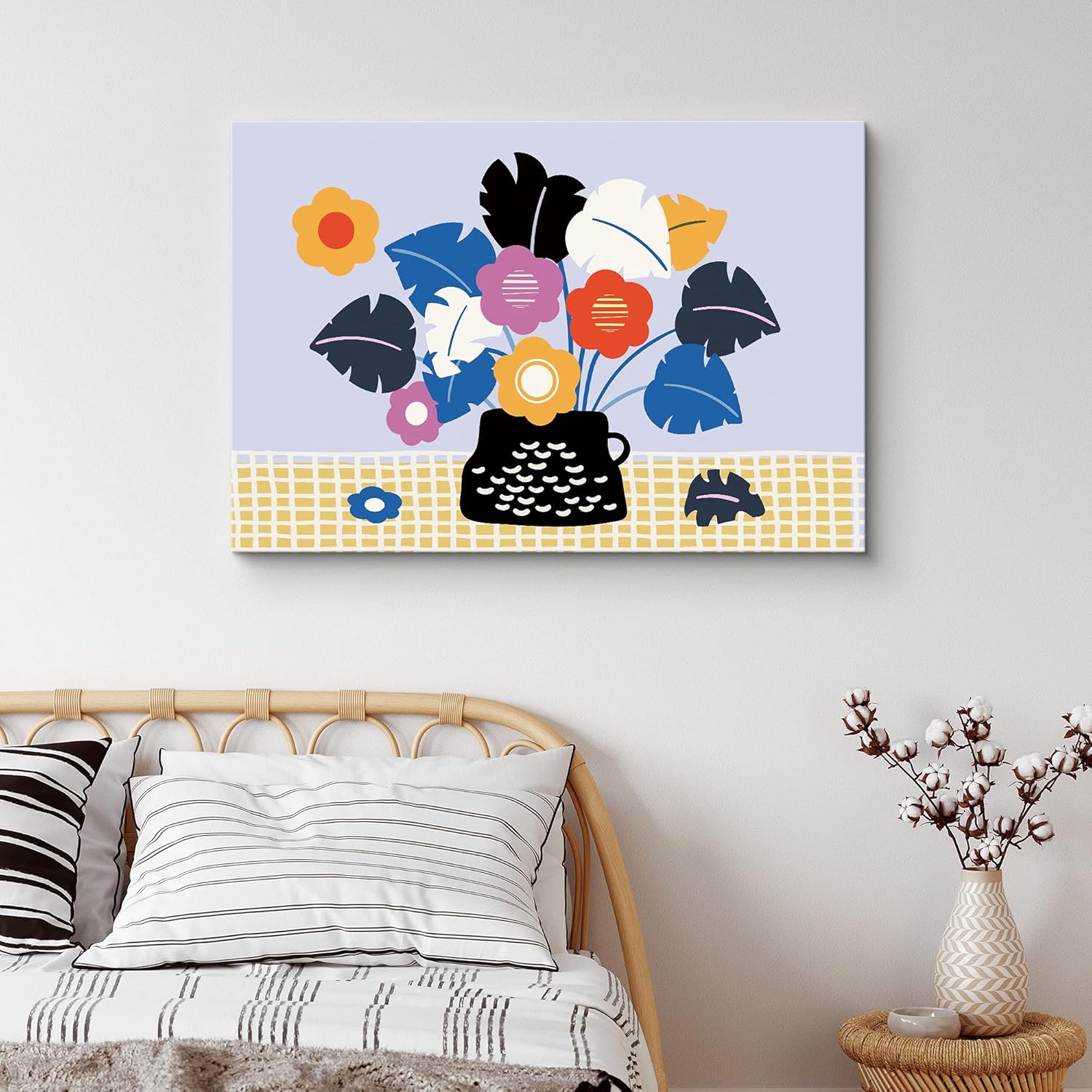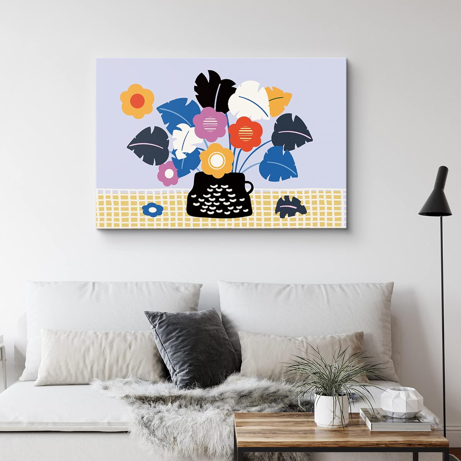 IDEA4WALL Canvas Print Wall Art Multicolor Medium Leaves in Black Vase Floral Wilderness Digital Art Modern Art Chic Group Relax Calm Multicolor Ultra for Living Room Bedroom Office