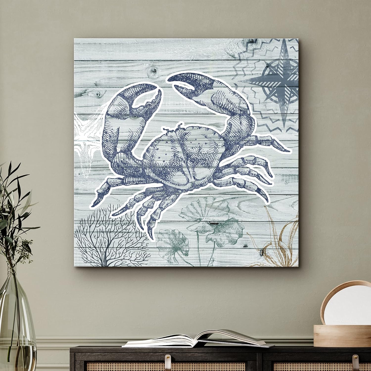IDEA4WALL Canvas Print Wall Art Crab Swims in Ocean Animals Beach Digital Art Modern Art Nautical Relax Calm Blue Duotone for Living Room Bedroom Office