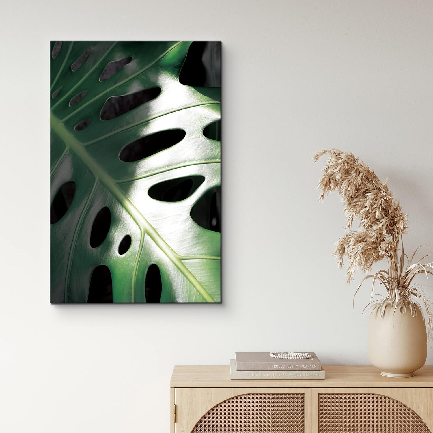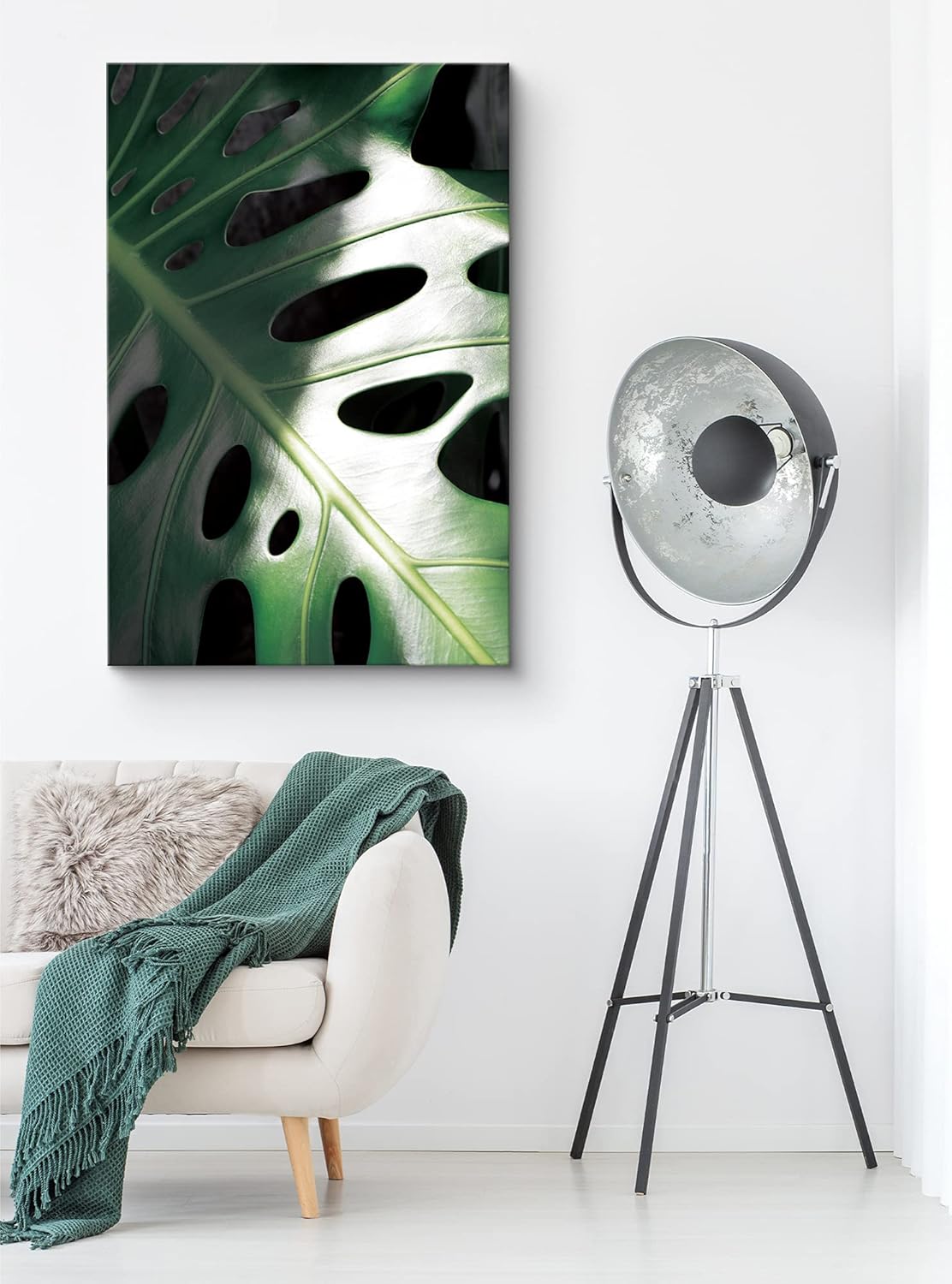 IDEA4WALL Canvas Wall Art Deep Green Swiss Cheese Monstera Leaves Botanical Plants Photography Modern Art Tropical Closeup Urban for Living Room Bedroom Office